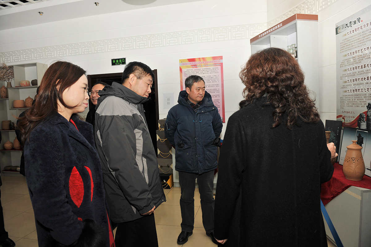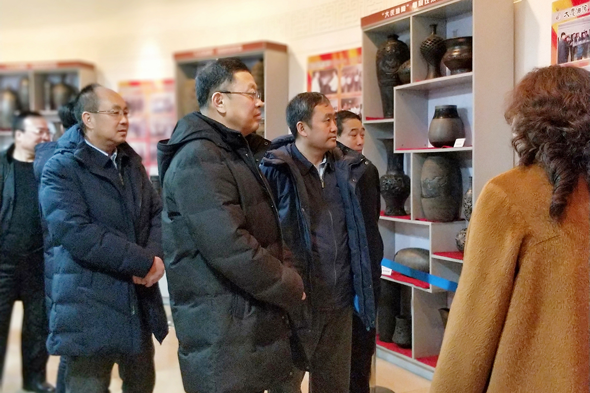 2018年1月29日、30日,在学校党委书记徐克明、校长乔志和陪同下,油田公司纪委书记罗文柱、省审计厅副厅长孙景山、省委党校副校长周英东等领导、专家在“油田公司审计系统业务培训班”授课间隙,参观了我校大庆油陶作品陈列。