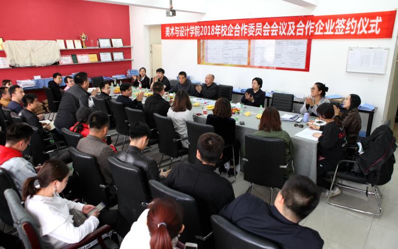 2018年4月27日,美术与设计学院举办2018年校企合作委员会会议及合作企业签约仪式,北京、哈尔滨、大庆市的30余家科技公司、培训机构、设计企业、艺术学校的代表参加了会议。美术与设计学院还同北京商鲲三维创想科技有限公司、荟客堂北京文化咨询有限公司、哈尔滨完美动力公司、哈尔滨甲骨文公司、大庆童话少儿美术教育机构、大庆番茄苗教育机构、大庆红火山美术潜能培训学校、大庆博洛尼装饰有限公司、大庆左岸域设计工作室、大庆甲方乙方瀚峰装饰公司、云尚设计工作室、银家手作工作室等12家企业及教育机构签订了专业实习基地协议。美术与设计学院全体领导班子成员、系部负责人和企业代表参加了签约仪式。