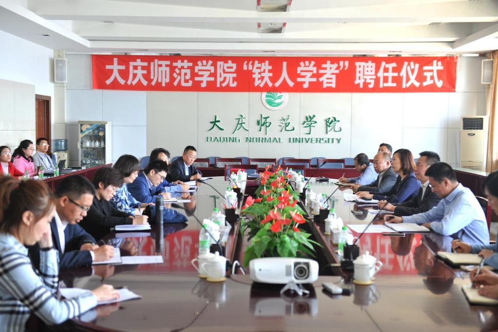郭崇林副校长做了讲话,他首先向八位受聘的“铁人学者”表示热烈祝贺,希望他们再接再厉、开拓进取、严谨求实,进一步提升学术水平,发挥示范带头作用,为学校的发展做出更大的贡献。他指出:要立足我校校情,打造学术平台、构筑学术高地、攀登学术高峰,服务地方社会,进一步实施人才强校战略,培育一批优秀学术带头人、学科带头人和青年学术骨干,建立一支与学校发展目标相适应的师资队伍,不断提升学校师资队伍建设的水平,力争涌现出越来越多的“铁人学者”。最后他希望各部门、二级学院进一步提高认识,把加强人才队伍建设摆在更加突出的位置,进一步促进师资队伍建设,构建良好的学术生态,以昂扬的精神面貌全力推进学校转型转制发展,为早日建成高水平地方应用型本科院校开启崭新的时代篇章!
