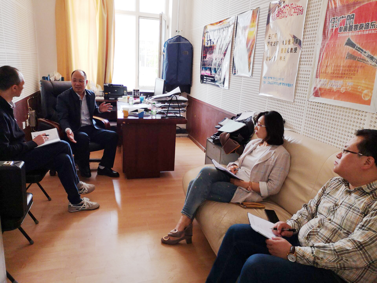5月17日上午,校长乔志和在教务处人员陪同下,到音乐与舞蹈学院调研指导工作。