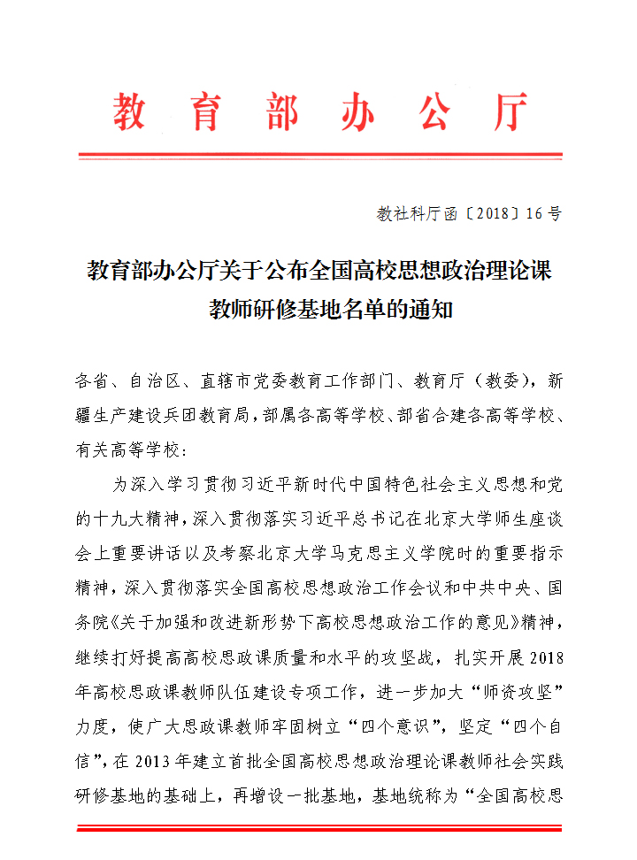 据省教育厅消息,5月25日教育部办公厅下发《关于公布全国高校思想政治理论课教师研修基地名单的通知》(教社科厅函〔2018〕16号)。通知指出,在2013年建立首批全国高校思想政治理论课教师社会实践研修基地的基础上,再增设一批基地,统称“全国高校思想政治理论课教师研修基地”,共30个。中文字幕日韩精品有码视频-久久免费区一区二区三波多野-中文字幕人妻A片免费看-精品视频一区二区在线看-好男人在线社区WWW被批准为“全国高校思想政治课教师研修基地”,位列第10位。