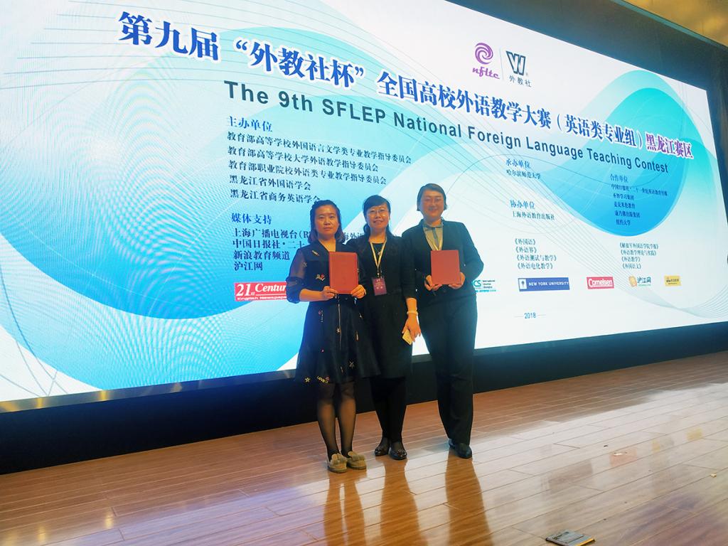 第九届“外教社杯”全国高校外语教学大赛黑龙江赛区决赛于2018年6月2日在哈尔滨师范大学圆满落幕。本次大赛分为预赛、复赛和决赛三个环节。我校外国语学院的王欣欣、王芳两位教师从40余名来自省内各高校的选手中脱颖而出。她们在比赛中表现优异,展示了娴熟的外语表达能力、优秀的教学设计能力以及先进的教学理念和方法。英语专业教师王欣欣获得英语专业组一等奖、商务英语专业教师王芳获得商务英语组三等奖。