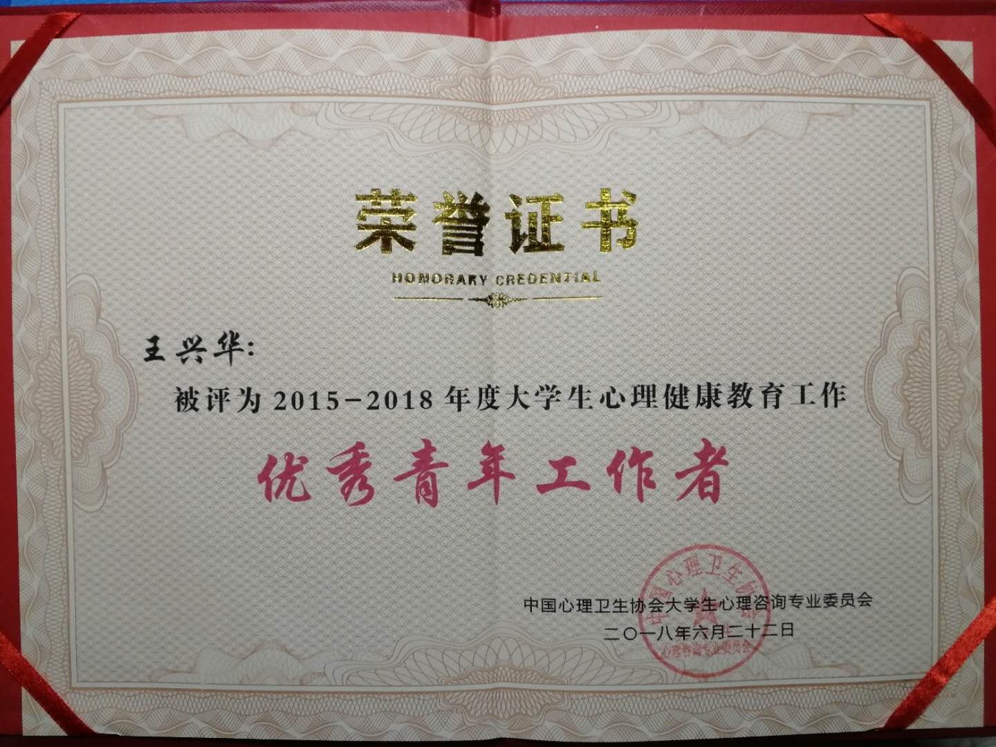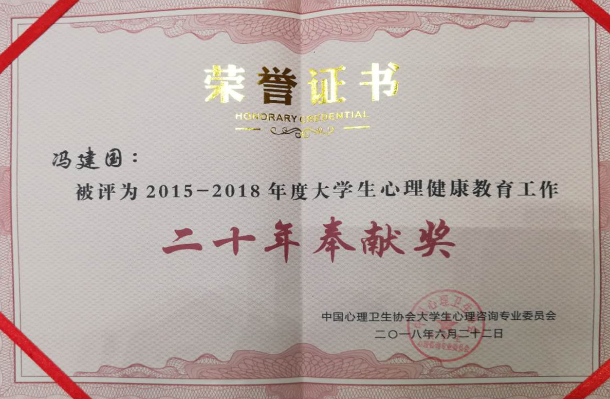 在22日的闭幕式上,大会为全国心理健康教育机构评选的先进集体、先进个人颁奖。我校大学生心理健康教育中心荣获2015-2018年度全国大学生心理健康教育工作先进集体(全国151所高校获选,我省6所高校获此殊荣),我校心理健康教育中心主任冯建国荣获大学生心理健康教育工作20年奉献奖(全国高校19人获此荣誉,我省有2人),我校心理健康教育中心王兴华老师荣获全国高校大学生心理健康教育工作优秀青年工作者(全国高校53人,我省3人),张慧泽老师荣获我省高校大学生心理健康教育工作优秀工作者。