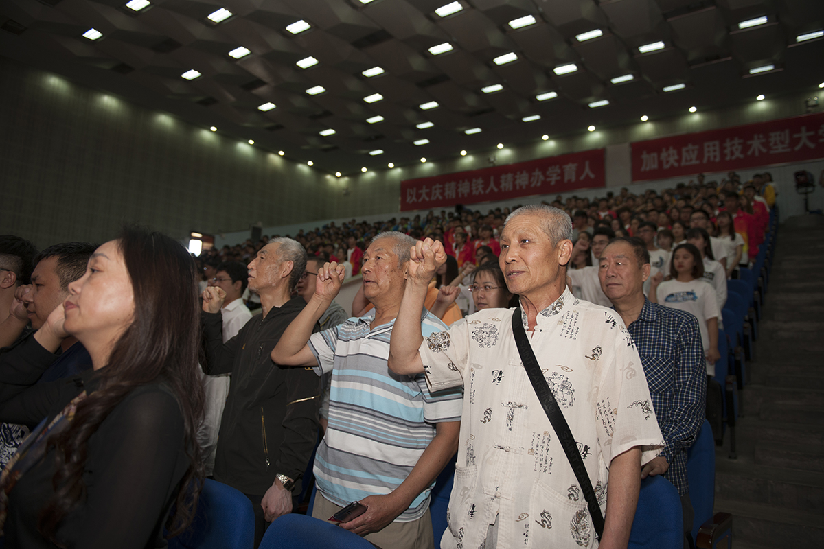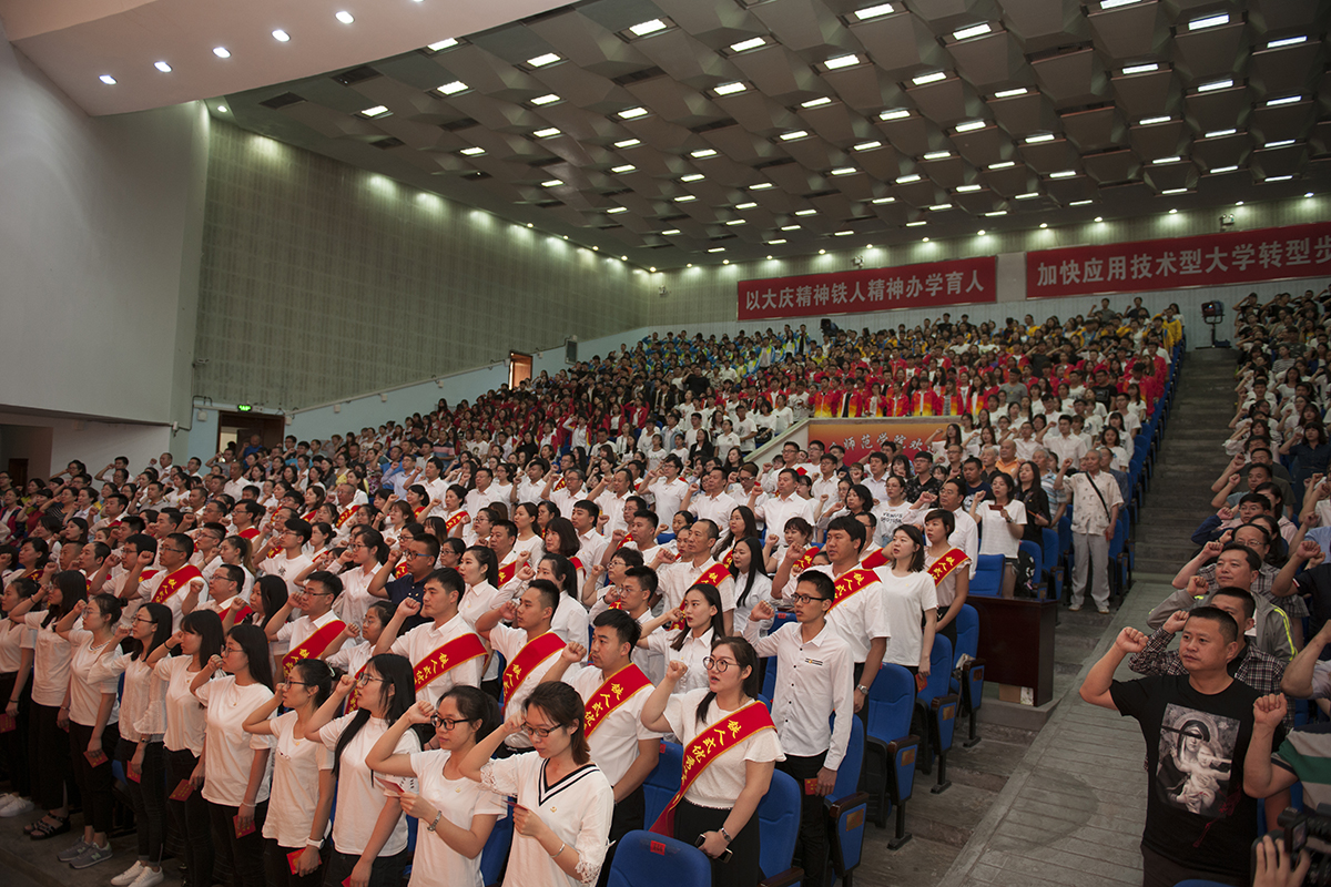 为庆祝建党97周年,发挥先进典型的示范引领作用,激励全校各级党组织和广大党员在学校转型发展中再立新功、再创佳绩。6月27日下午,学校在大学生活动中心隆重举行党员重温入党誓词暨新党员入党宣誓仪式和庆祝建党97周年表彰大会。学校领导班子成员徐克明、乔志和、王革、刘恒、张国军、郭崇林、徐晓东,学校副总督学以上领导,各单位党政领导、机关部门负责人,教工、学生党员代表800余人参加会议。会议由党委副书记、纪委书记王革同志主持。
