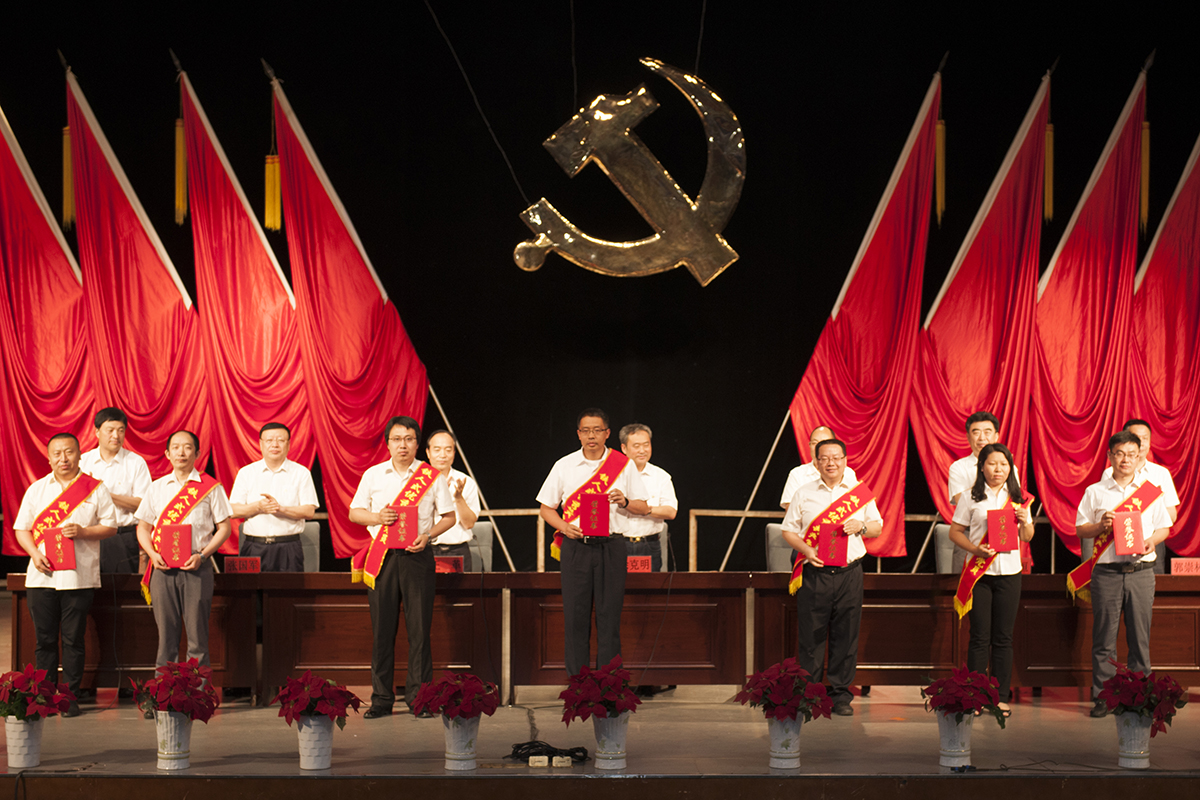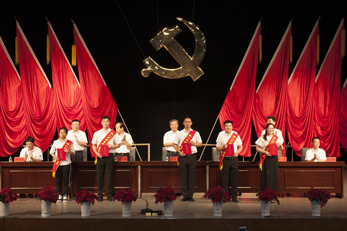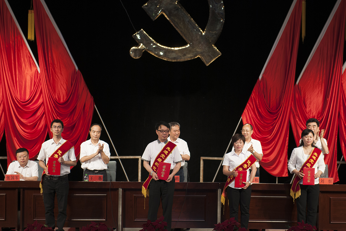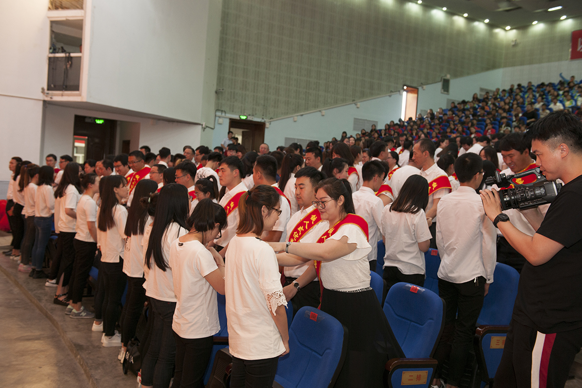 表彰大会前,首先进行老党员为新党员佩戴党徽仪式和宣誓仪式,在副校长刘恒同志的领誓下,全体党员面向党旗庄严宣誓,铮铮誓词响彻会场。