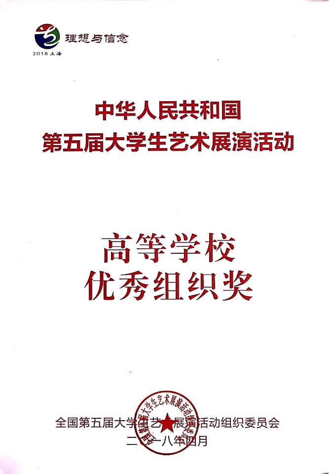 在由国家教育部、上海市人民政府主办,主题为“理想与信念”的全国第五届大学生艺术展演活动中,我校音乐与舞蹈学院参赛舞蹈《嬗变》获得艺术表演类乙组(专业组)二等奖。
