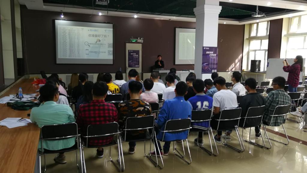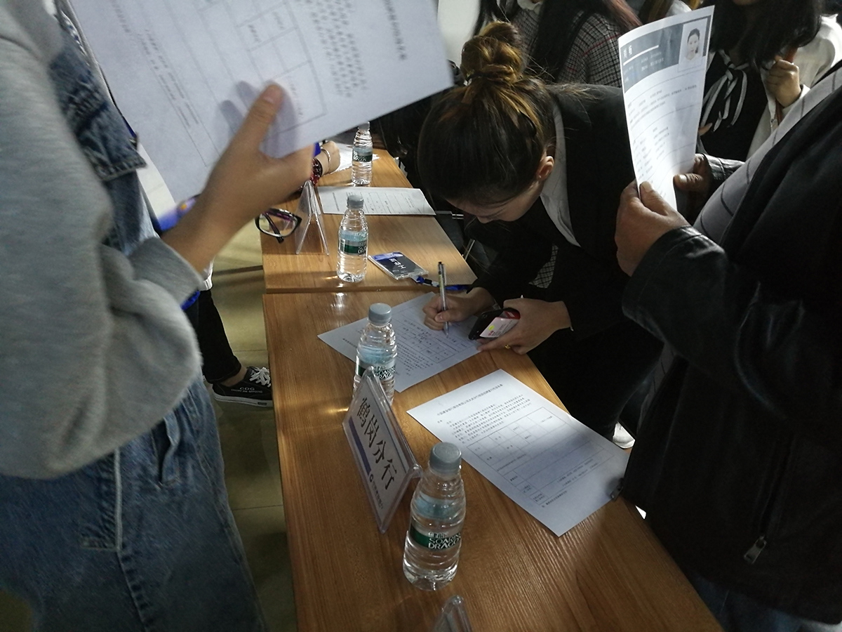 中国电信黑龙江分公司在我校面向法学、电子信息工程、网络工程等专业招聘法律事务、网络技术支持、软件工程师等岗位,工作地点为省内主要市级地区。现场有6名学生填写了求职申请。