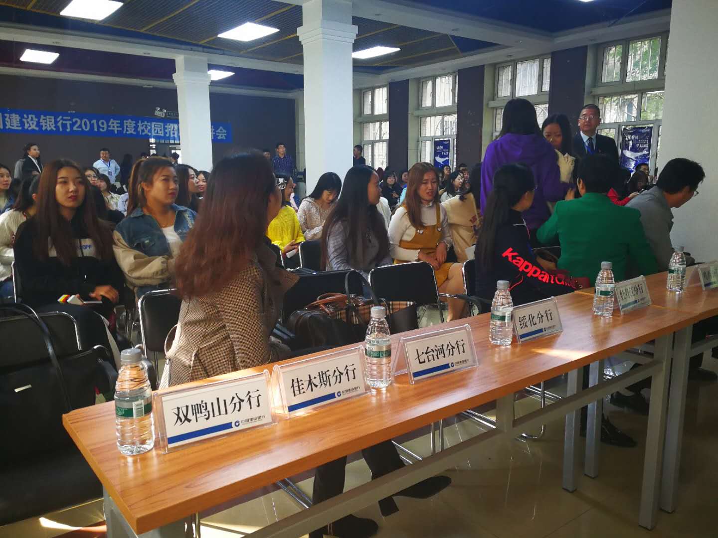 中国建设银行黑龙江分行非常重视本次校园招聘,将省内主要市区支行的人力资源主管带到我校,与学生面对面沟通。会上,有两位建行的领导做了招聘宣讲,他们分别来自我校外国语学院1994届毕业生和计算机科学与信息技术学院2008届毕业生,这更加让现场学生振奋鼓舞。来自学校各专业学生162人参加本次建行校园招聘会,上交应聘信息表36份。