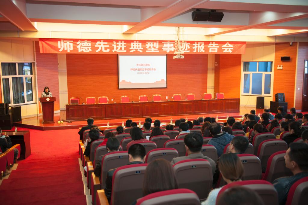 为了深入贯彻习近平总书记在全国教育大会上讲话精神,进一步加强我校师德师风建设,树立优良师德典型,增强广大教师爱岗敬业、教书育人的责任感和使命感,营造良好育人环境,10月24日下午,由党委宣传部、人事处共同举办的师德先进典型事迹报告会在博雅讲堂如期举行,会上教师教育学院教师张晓梅,机电工程学院教师王凤嫔,文学院教师任金凤分别作了先进事迹报告,党委书记徐克明以及200余名教师共同聆听了三位优秀教师真实而感人的故事。