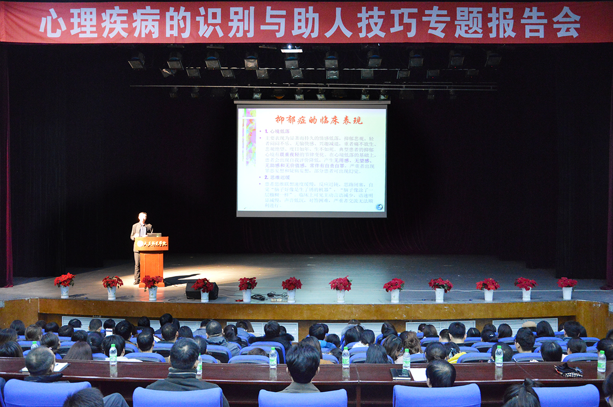 为进一步深化创新铁人精神育人实践,深入开展“关爱中成长”教育活动,全面提高人才培养能力,树立三全育人意识,形成育人合力,11月21日下午,我校心理健康教育中心主任、心理分析博士冯建国老师在大学生活动中心举行作了题为《心理疾病的识别与助人技巧》的报告。