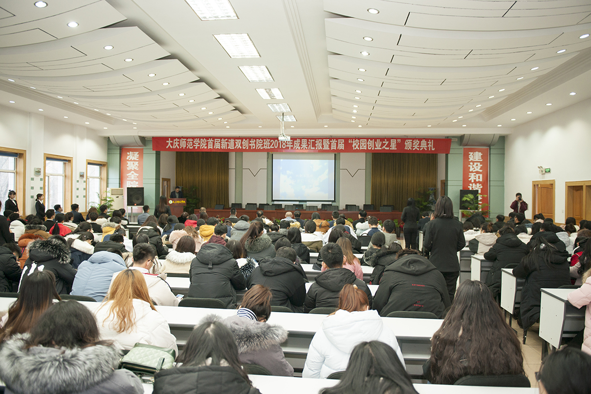 为回顾总结我校新道双创书院班成立一年来取得的成绩,深入挖掘和表彰创业典型,凝聚创新创业力量。1月2日,学校“首届新道双创书院班2018年成果汇报暨首届‘校园创业之星’颁奖典礼”在铁人讲堂举行。机关相关部门、各学院党政领导、辅导员及学生创业代表等200余人参加了此次活动。