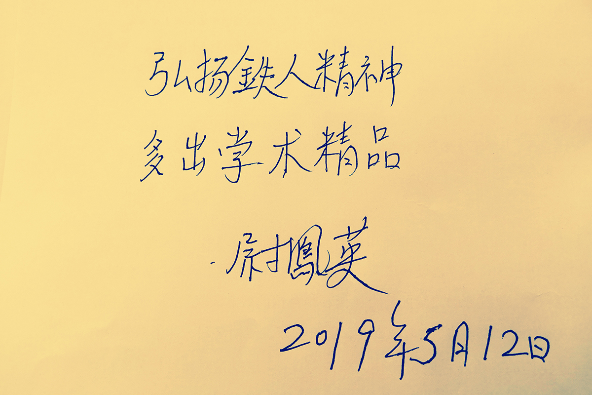 在本次研讨会上,当全国劳动模范、“毛主席的好工人”尉凤英老人获悉我校围绕大庆精神铁人精神开展研究与实践后,动情地说:“铁人和我是老朋友,我还去过他家呢!”并欣然为我校大庆精神研究基地题词,鼓励我校“弘扬铁人精神,多出学术精品”。(撰稿:陈立勇审核:马吉芬)