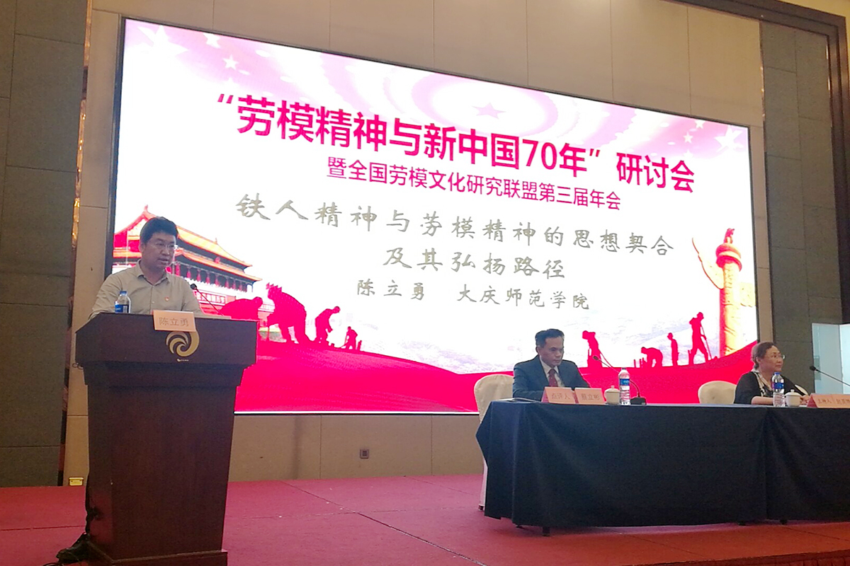 在主题演讲环节,我校大庆精神研究基地副主任陈立勇副教授以《铁人精神与劳模精神的思想契合及其弘扬路径》为题,从铁人精神基本内涵形成的历史文献考察、铁人精神与劳模精神思想契合的四重维度、高校传承弘扬劳模精神的三点思考等三个方面阐释了铁人精神与劳模精神的本质联系,发言反响热烈,受到与会专家学者的好评。