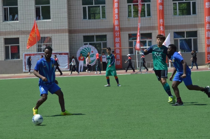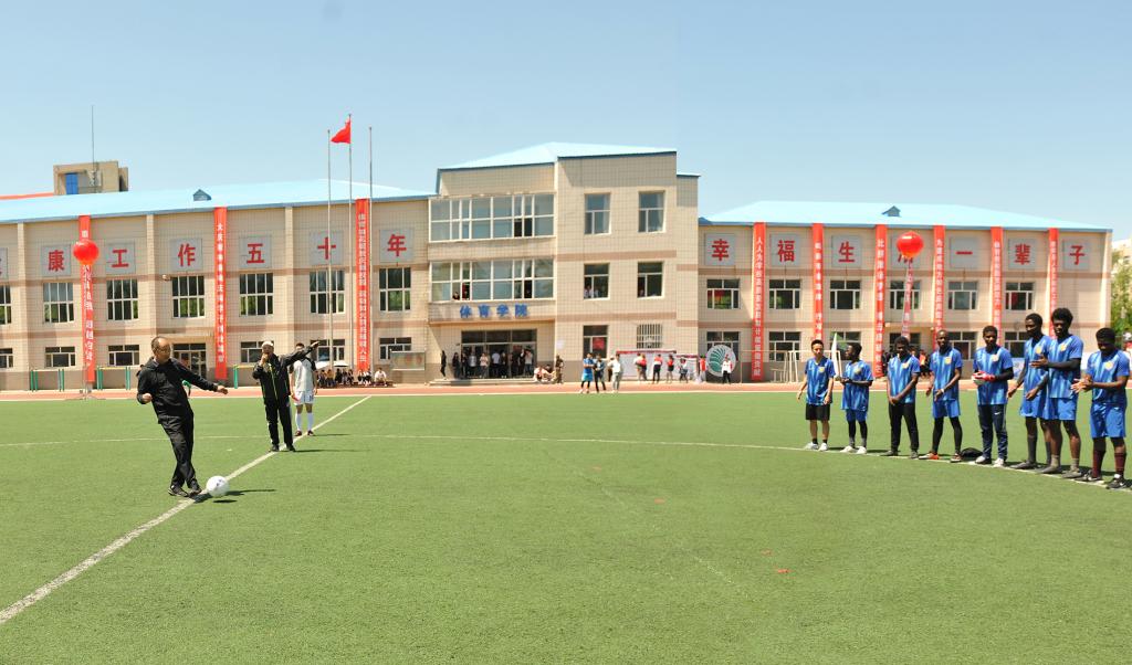 运动会期间,体育学院足球队和我校留学生举行了一场精彩的足球友谊赛,校长乔志和为足球赛开球。