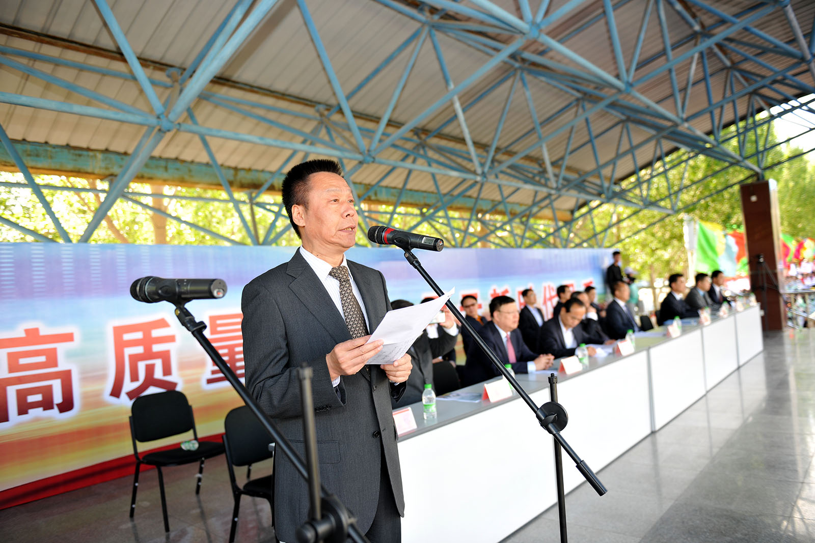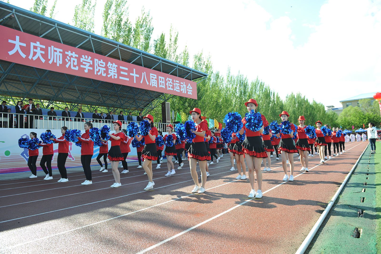 2019年5月30日上午8时,我校第三十八届田径运动会在体育场隆重举行。党委书记徐克明、校长乔志和、党委副书记王革、副校长刘恒、张国军、王福友、纪委书记滕强、工会主席徐晓东以及大会主席团成员在主席台就坐。