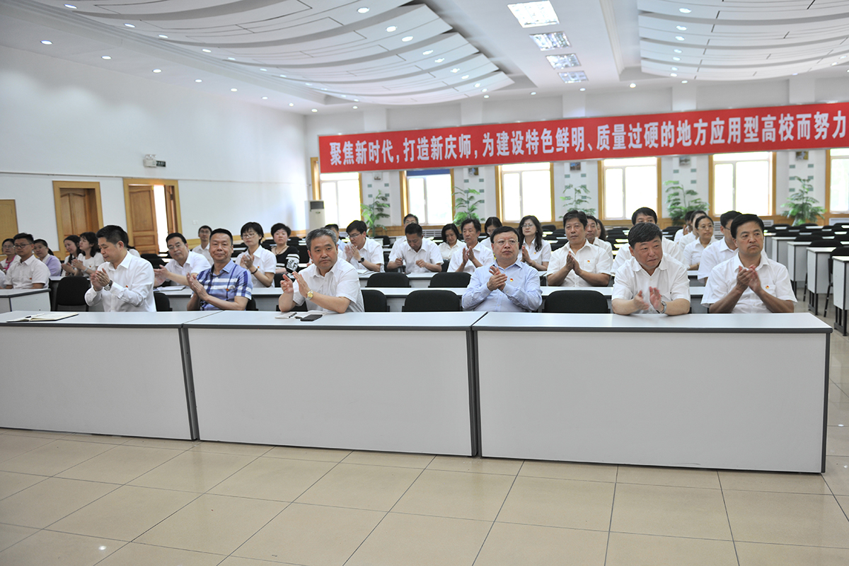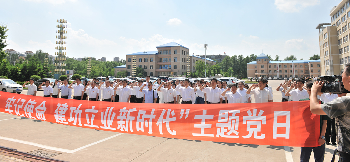 “我志愿加入中国共产党,拥护党的纲领……”宏亮的声音在铁人雕像前激荡,在学校党委委员、组织部部长艾连北同志的带领下,机关全体党员重温入党誓词。随后,党员以支部为单位在党旗下合影留念。座谈会上,卞清霞、邱雪峰、燕明辉、曾四龙、郭锐、焦玉奎等6名同志先后发言,回顾了入党宣誓时的庄严承诺和坚定决心,将牢记共产党员的政治责任和历史使命,不断保持共产党员的先进性,切实发挥共产党员的先锋模范作用,永葆共产党员的政治本色,以更加饱满的热情投身岗位工作,积极为推进学校改革发展贡献力量。