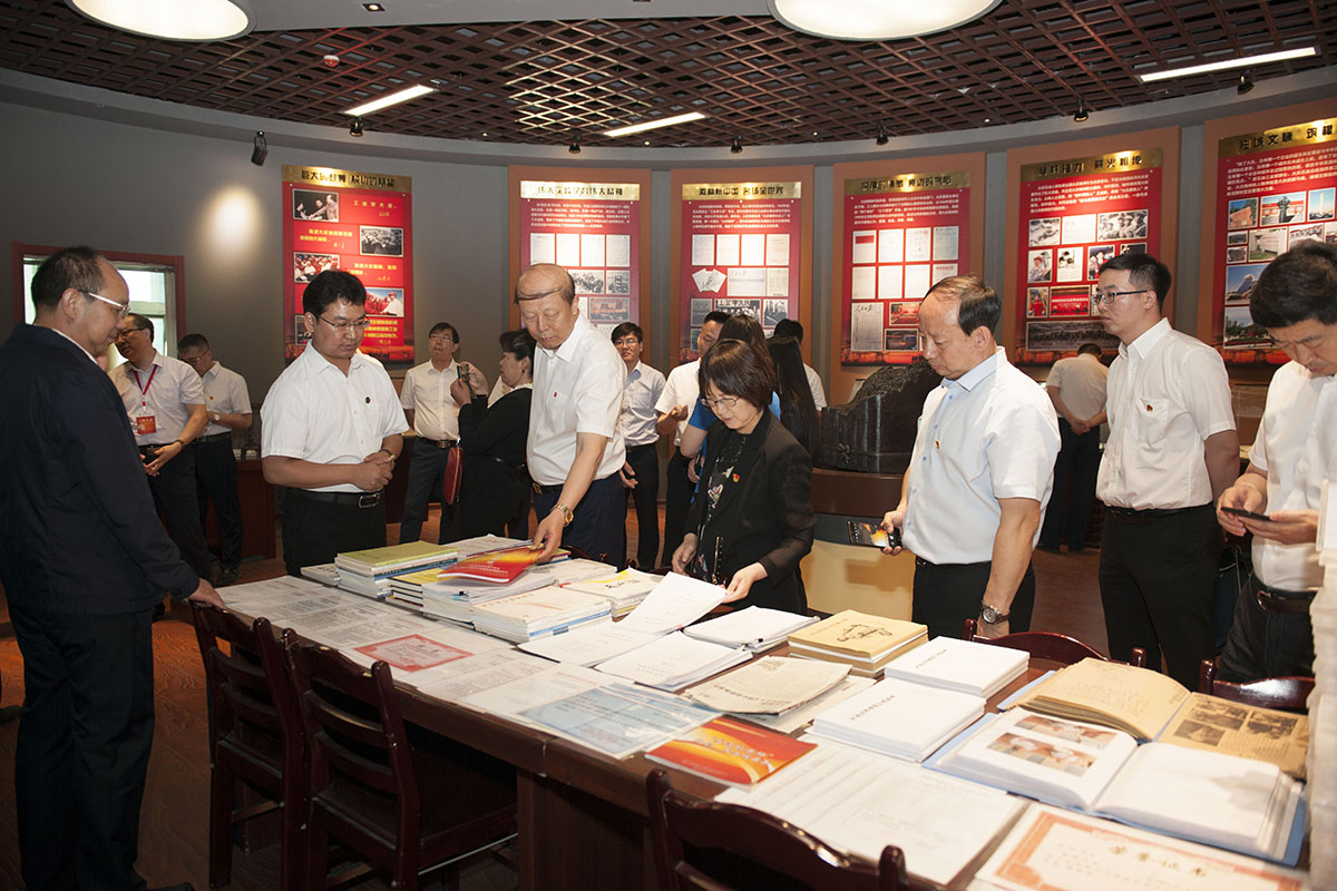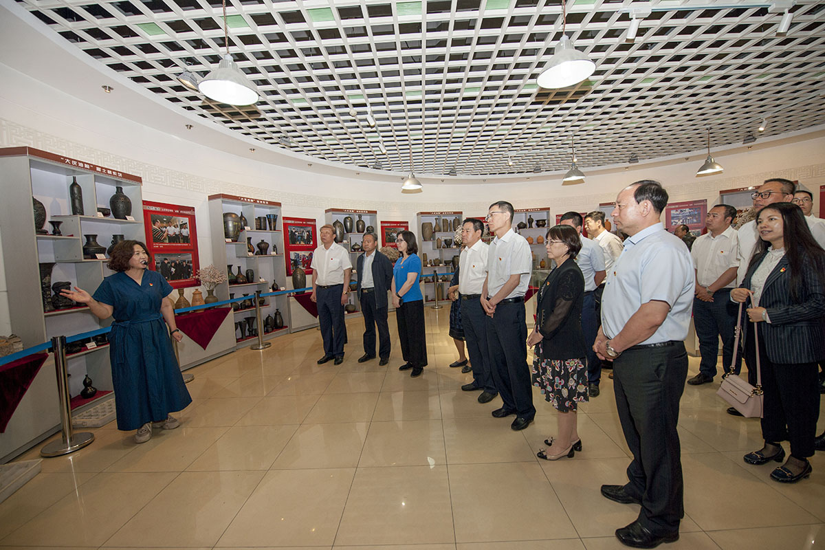 在油陶展室,大家仔细了解了蕴含石油气息的“大庆油陶”及系列作品,被大庆油陶作品所散发出的独特艺术魅力深深吸引。在大庆精神文献研究中心,中心组(扩大)成员观看了展柜中珍贵的会战文物资料、图书等展品,对大庆精神的基本内容与时代内涵有了详细理解,通过大庆会战口述史资料,重温了那段峥嵘岁月,进一步领悟了铁人精神的精髓。