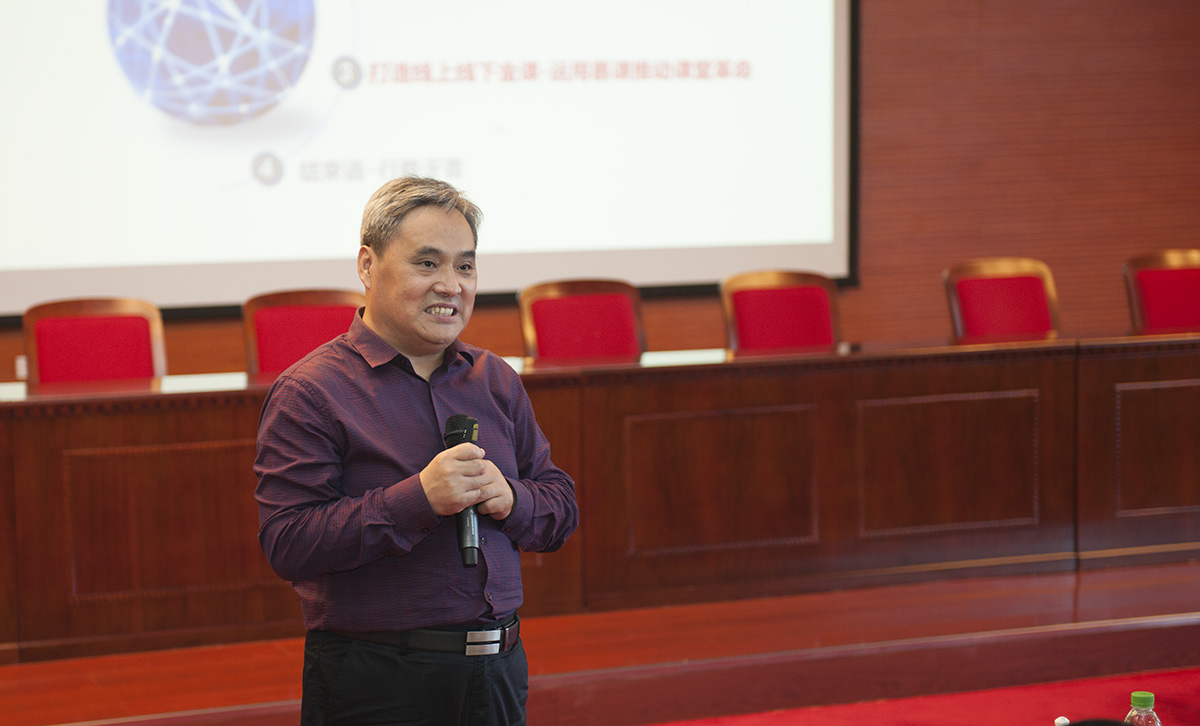 北京超星集团副总经理于露明作了《“一平三端”助力混合式金课建设》专题报告,介绍了目前利用信息化教学工具改变传统课堂的技术进展。