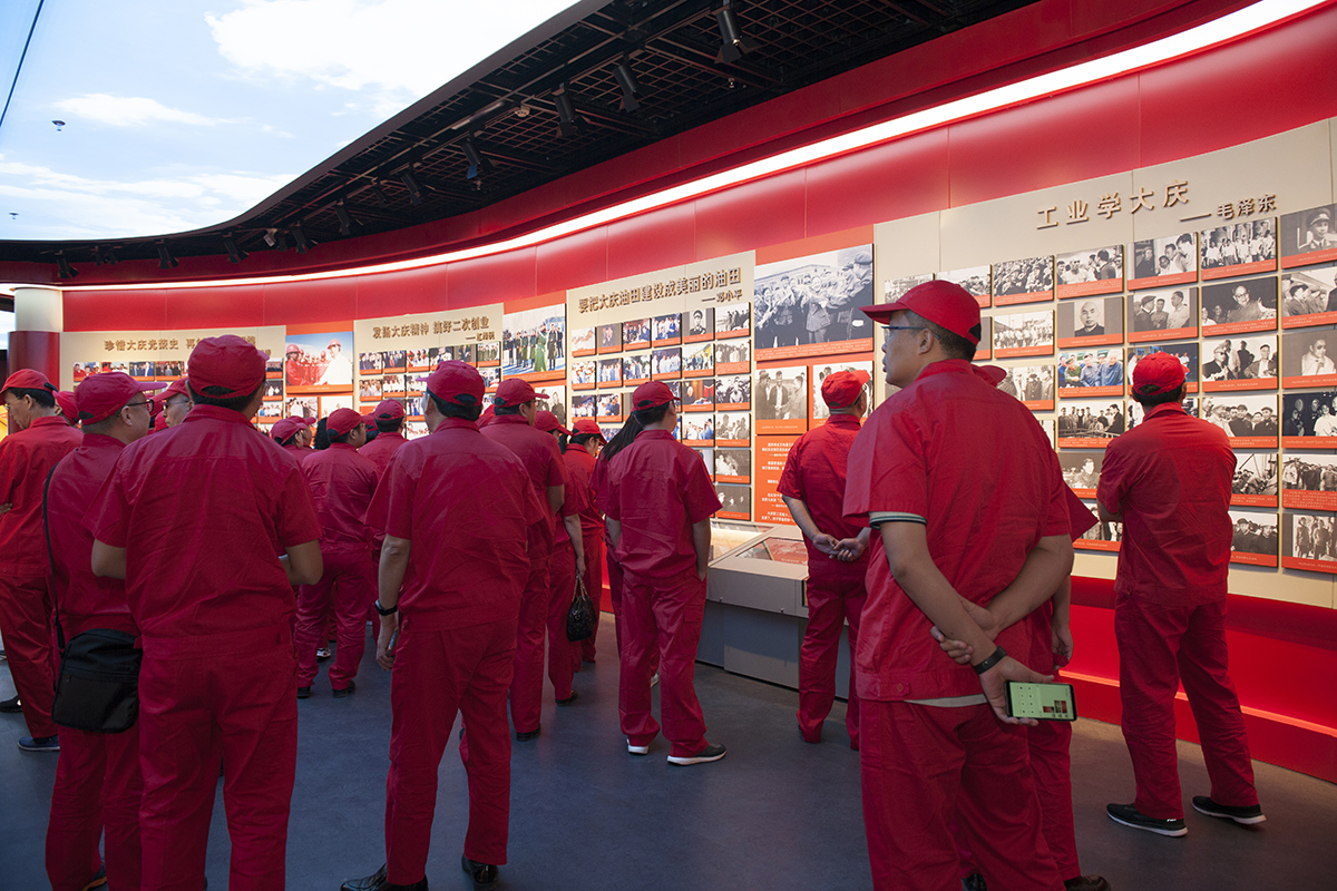 9月3日,学校副科级以上干部参加全国思政课教师研修基地组织的实践研修,参观了全国爱国主义教育示范基地——大庆油田历史陈列馆。这是一次震撼人心的党课!展厅内的每一幅图片、每一张图表和一件件实物、一段段视频,都展现了铁人王进喜47年短暂而不平凡的人生历程,展现了“爱国、创业、求实、奉献”的大庆精神、铁人精神。它带我们回顾了油田艰苦的历史与光荣,让我们不忘自己的"根"与"魂"。