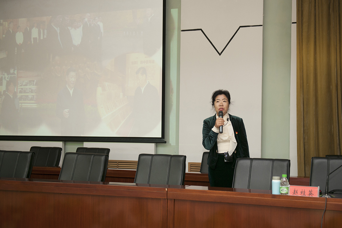 马克思主义学院党总支书记赵桂英同志作《习近平关于“不忘初心、牢记使命”重要论述选编》导学。