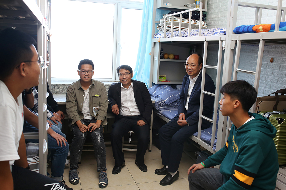 学校党政领导班子在新生报到的第一时间,纷纷走访所关爱的学生寝室与新生见面,深入了解学生家庭状况和生活习惯,鼓励他们尽快适应大学生活和学习环境,养成良好的学习和生活习惯,要珍惜机会做一个感恩时代的大学生,要树立明确的目标,有追求有理想,咬定青山不放松,做一个奋斗拼搏的大学生,做一个有温度有梦想的大学生,做一个有真本领的大学生,引导同学们树立正确的学习观、人生观、就业观,确立新的奋斗目标、制定合理的大学规划,刻苦学习,圆满完成学业。