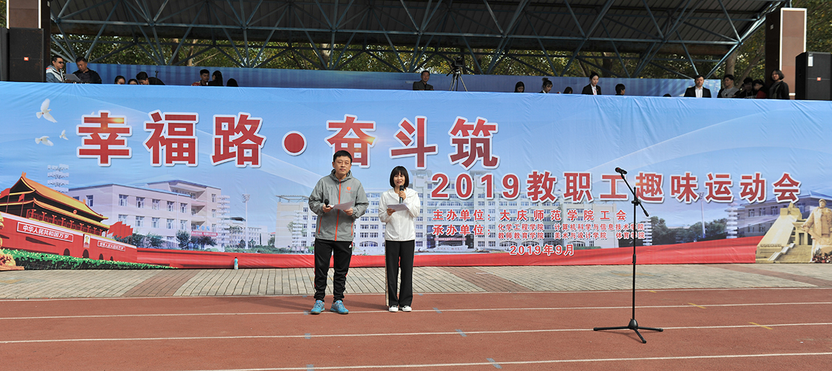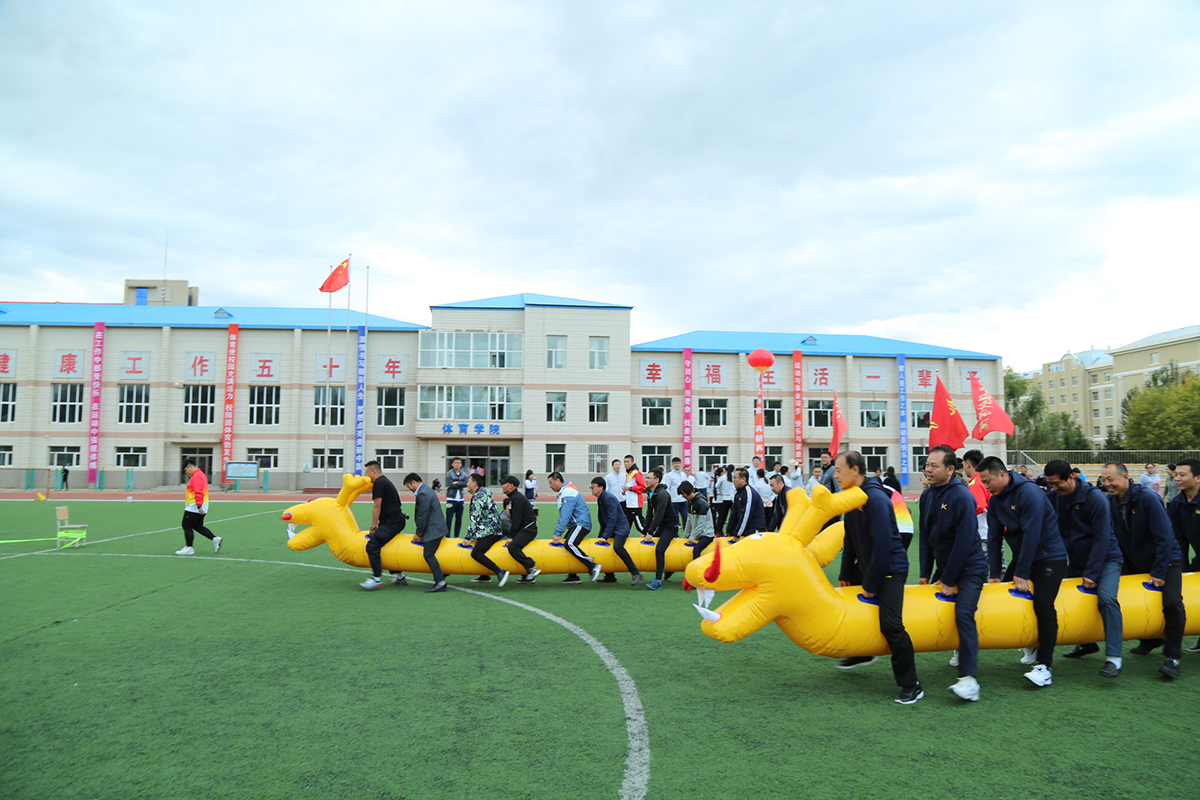 为庆祝油田发现60年、新中国成立70年,进一步提高教职员工健身意识,增强团队凝聚力,使教职员工在政治上有荣誉感,组织上有归属感,生活上有幸福感,激励教职员工为学校转制转型发展和个人幸福继续努力奋斗,校工会于9月19日下午举办“幸福路奋斗筑”2019教职工趣味运动会。
