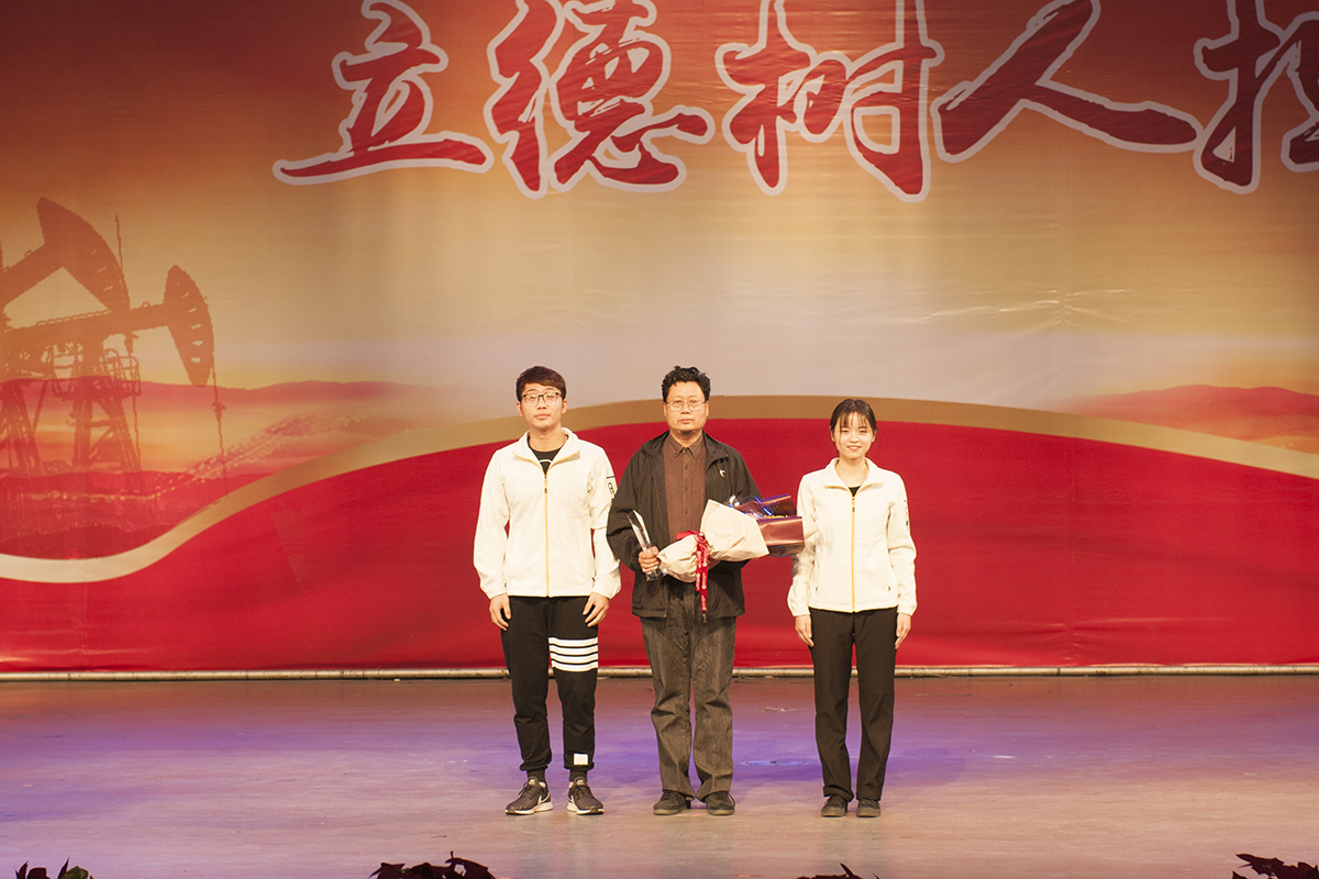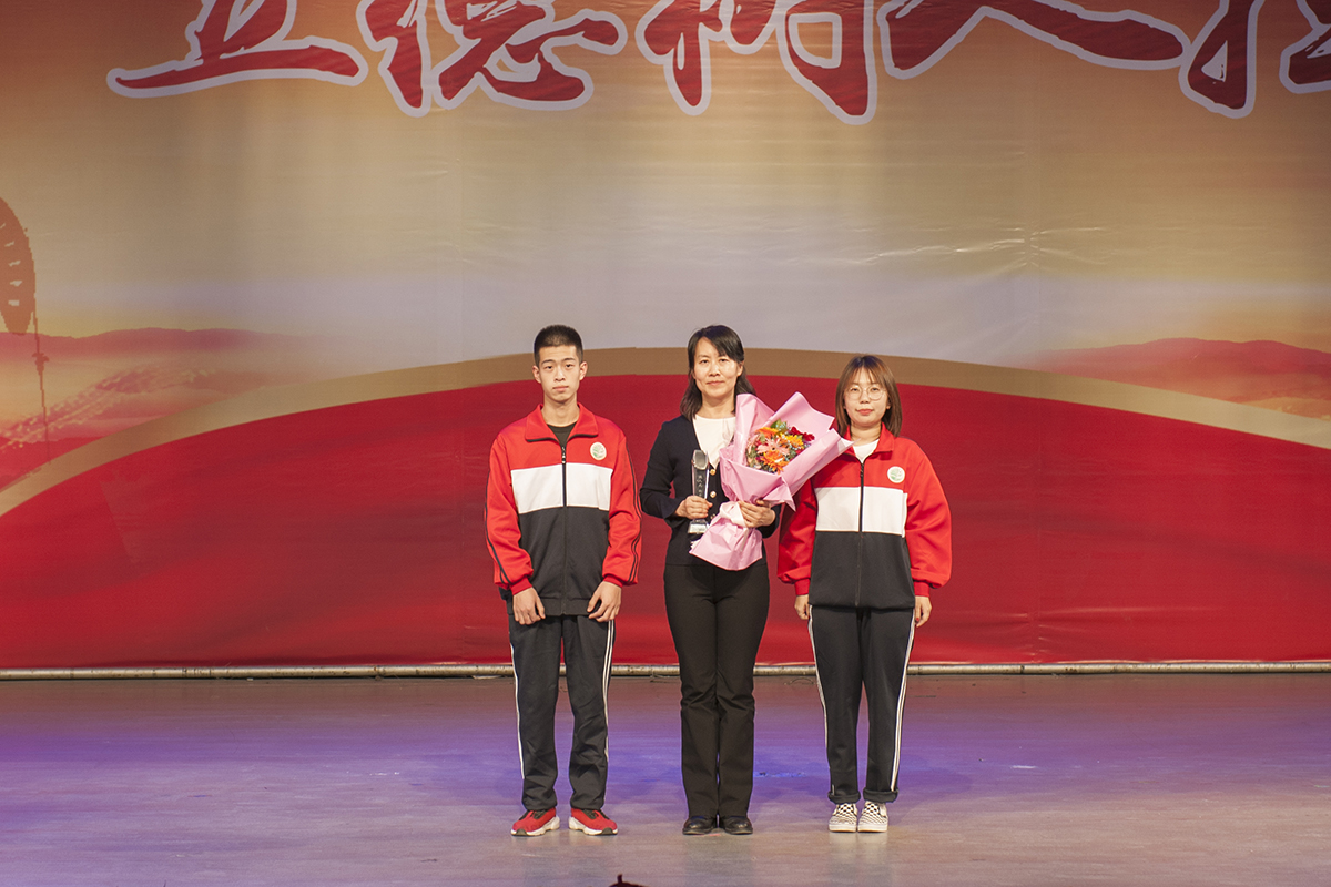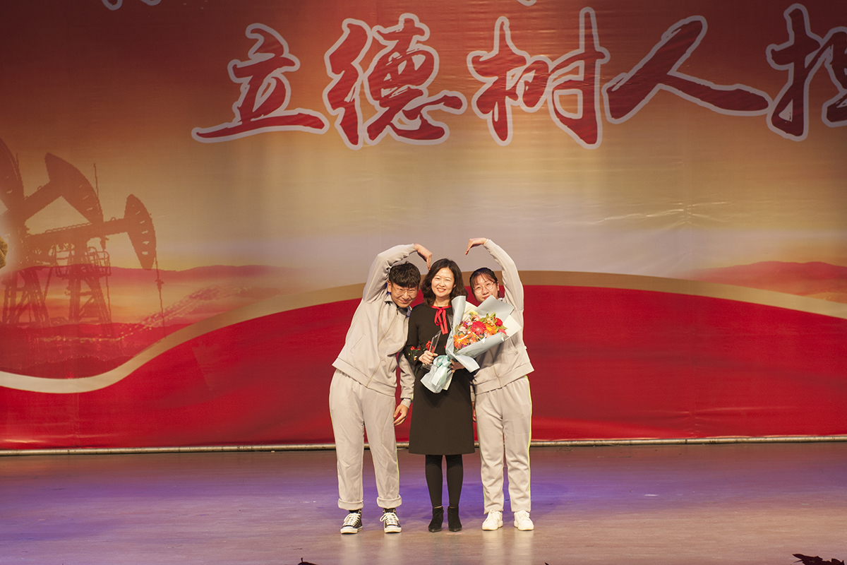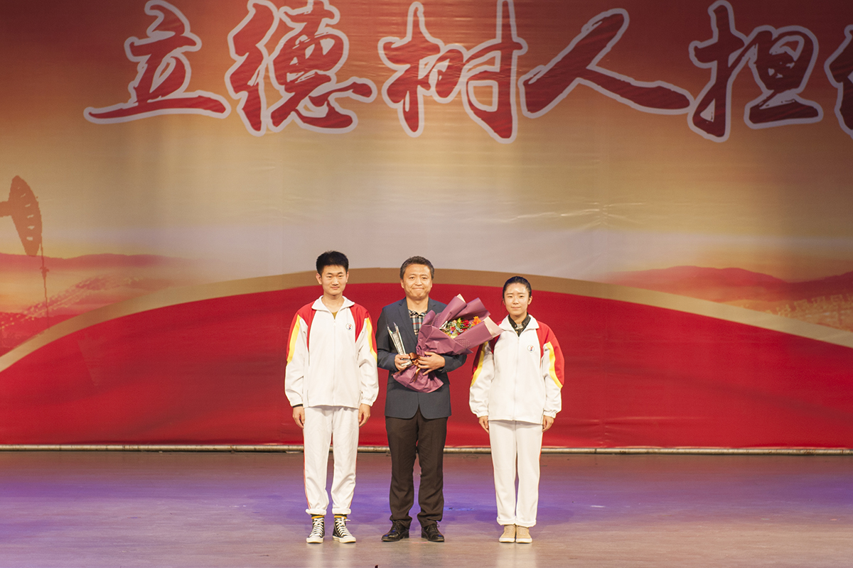 颁奖典礼上,主持人讲述了“铁人式”优秀班主任的优秀事迹,所带班级学生向获选班主任老师献奖。颁奖仪式热烈隆重,优秀班主任的事迹感人至深。本次评选通过各单位推荐,评审组审核,最终评选出“铁人式”优秀班主任邓进军、沈赏、高有才、杨晓玉、徐太海、张大伟、陈晓明、宋宏明、任金凤、温泉、张华,优秀班主任张志国、崔永锋、史东芳、李珊珊、杨艳娟、张灿、李瑞英、付媛、车鑫、郭玲燕。