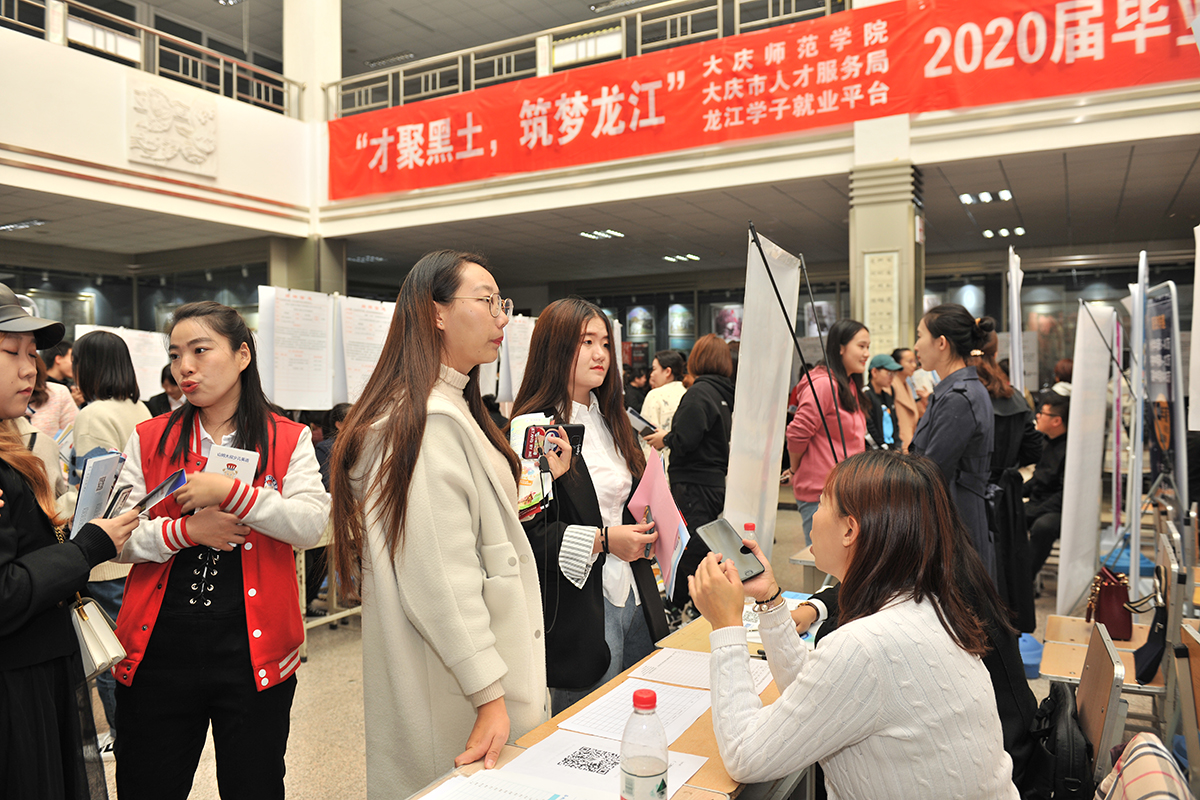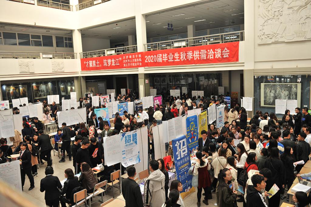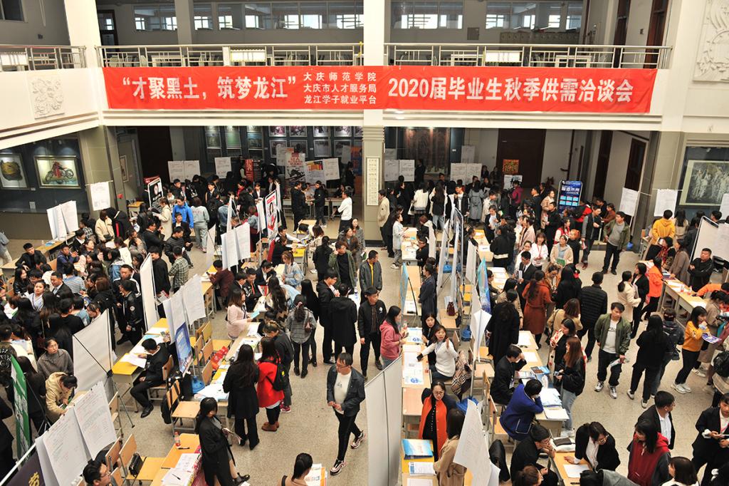 10月23日,我校在图书馆举办“才聚黑土,筑梦龙江”2020届毕业生秋季大型供需洽谈会。