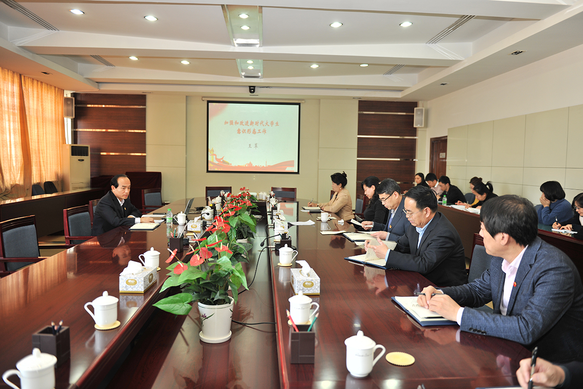 党委副书记王革为党委组织部、党委宣传(统战)部、马克思主义学院全体党员讲授了主题为《加强和改进新时代大学生意识形态工作》的专题党课。王革同志就意识形态工作是党的一项极端重要的工作,高校意识形态工作面临严峻的挑战,我们必须把握意识形态工作领导权、管理权、话语权,加强高校意识形态阵地建设等方面进行了专题讲授。