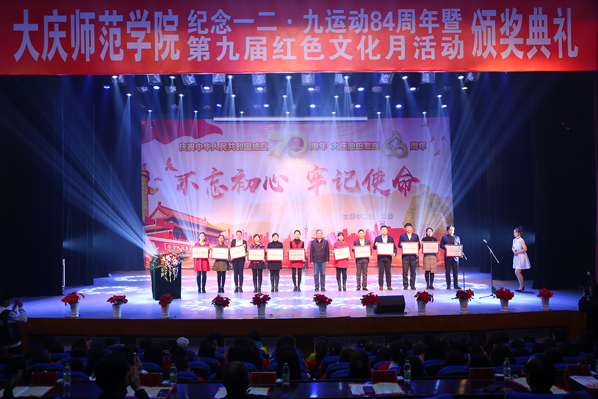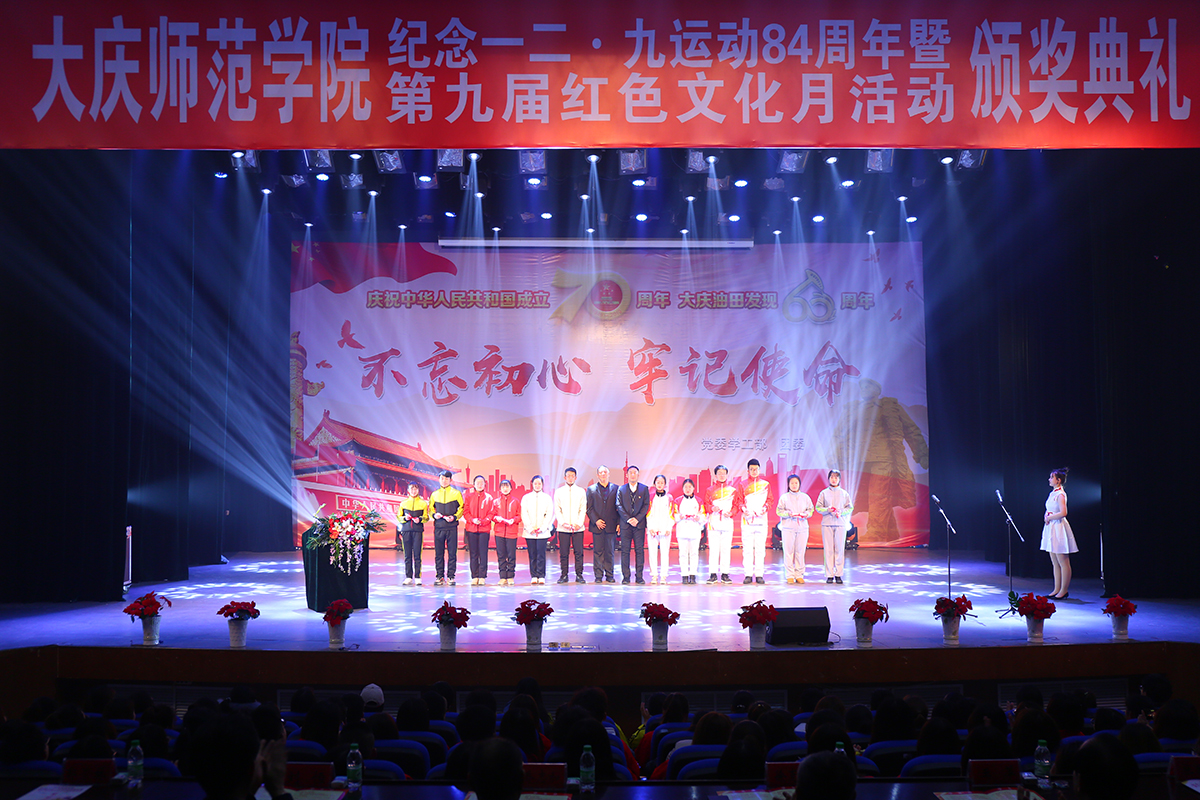 12月4日下午,我校在大学生活动中心举行纪念一二·九运动84周年暨第九届红色文化月活动颁奖典礼。