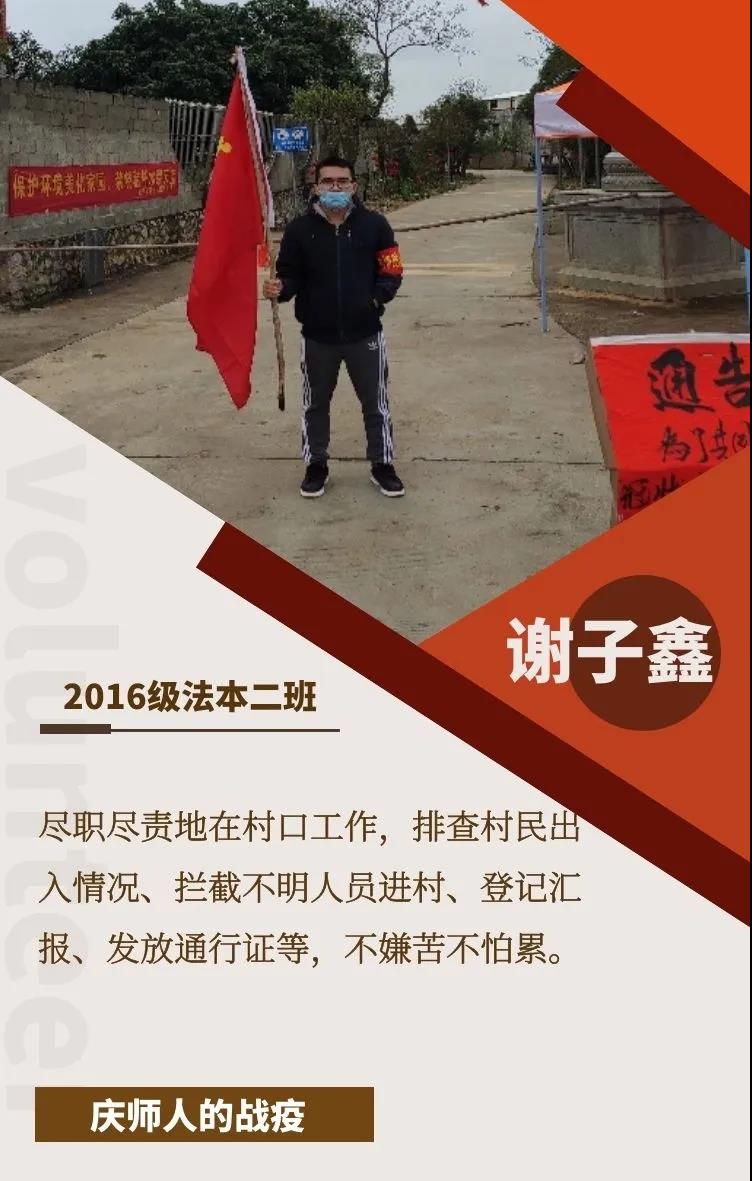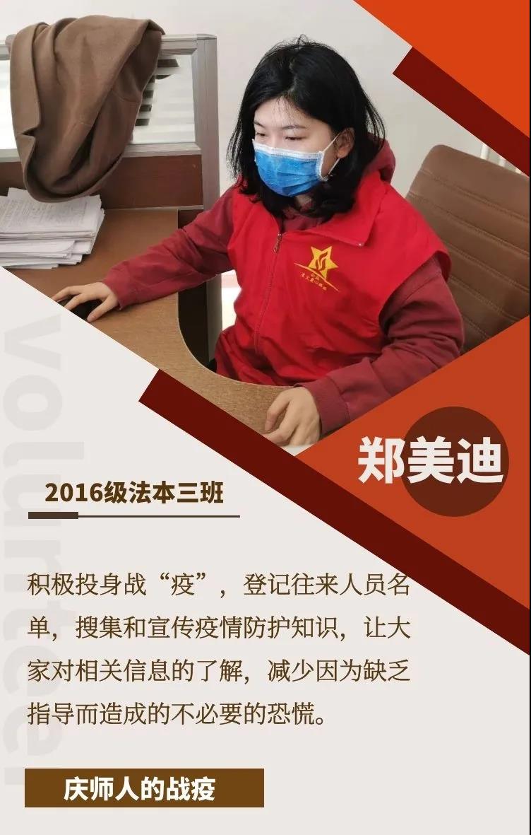 有一群庆师青年,他们自觉担当,主动出击,毅然投身这场艰难的战役中,他们就是可爱的志愿者们。