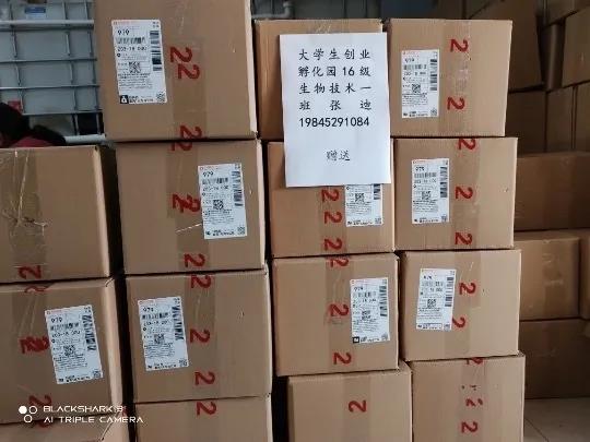 疫情无情人有情,校友爱心永传行。在疫情防控的关键时期,在我校大学生创业者协会的积极倡议和推动下,学校大学生创业孵化园创业团队积极援手学校,捐赠一次性医用口罩1500只、消毒液300瓶等防疫物资。