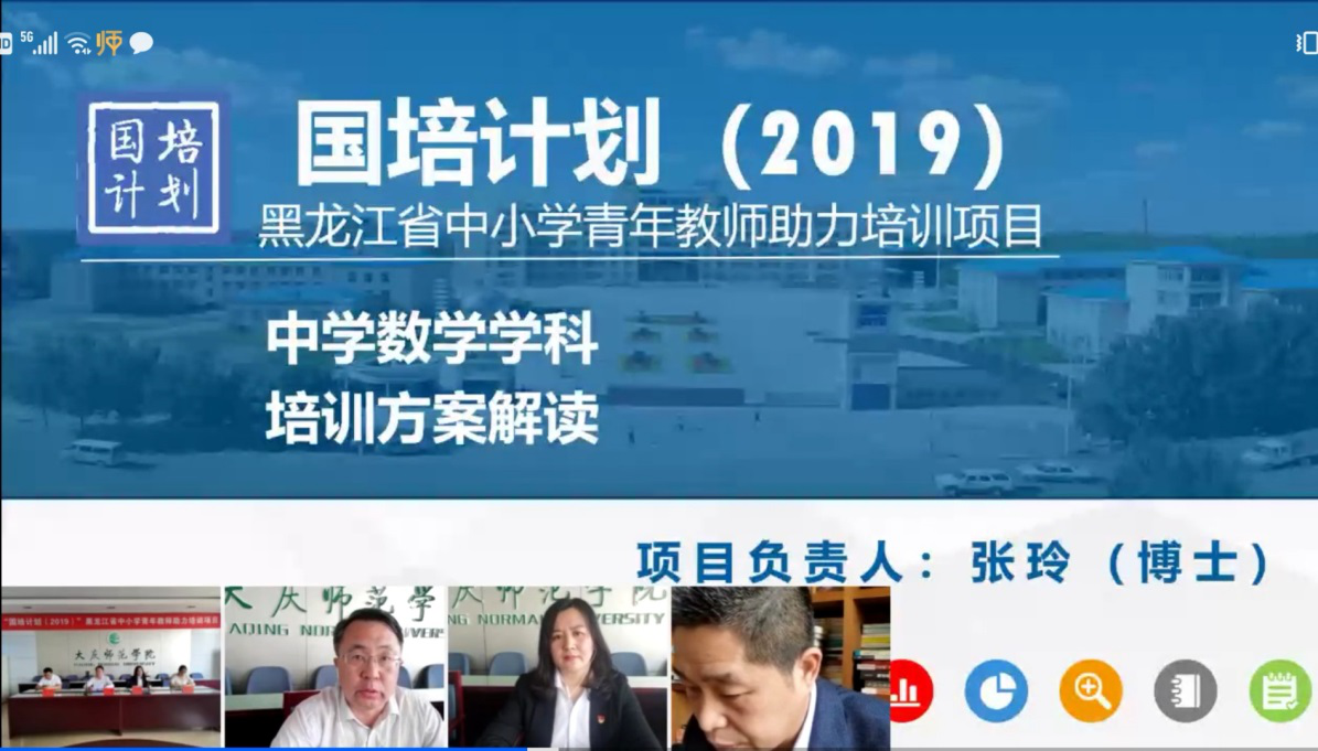 6月8日上午,“国培计划(2019)”一黑龙江省中小学青年教师助力培训项目(初中数学)通过奥鹏教育的师训宝平台举办了开班仪式。开班仪式由继续教育学院院长葛焱东主持,副校长王福友、数学系主任张玲、班主任徐伟老师和刘洋老师参加开班式。会上,王福友副校长代表学校对来自我省14个地市区县乡镇的100名中学数学青年教师、参会的省教育厅师资师范处以及兄弟院校的领导、同仁表示热烈欢迎和衷心感谢,并对管理团队、专家团队和学员提出了要求和希望。