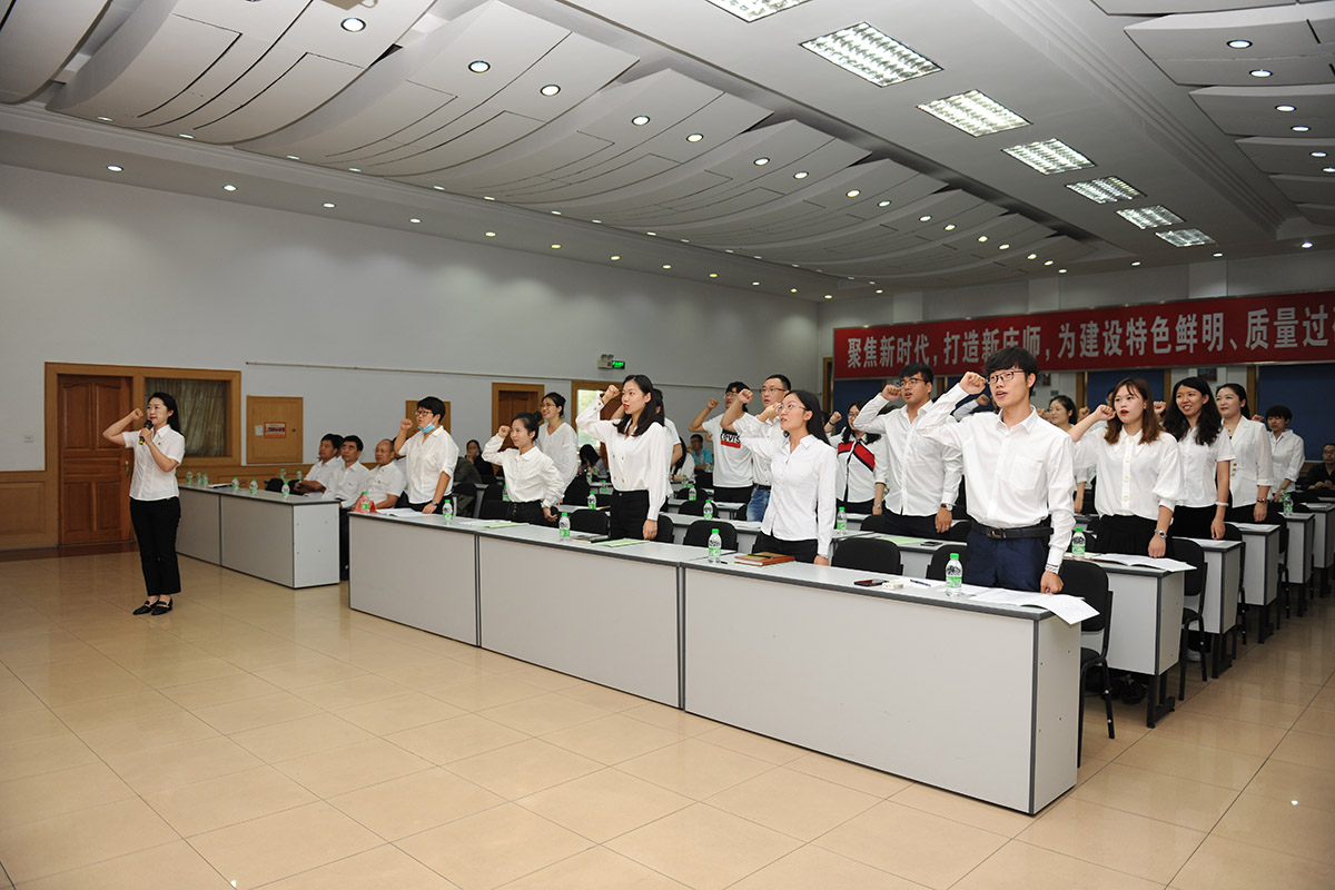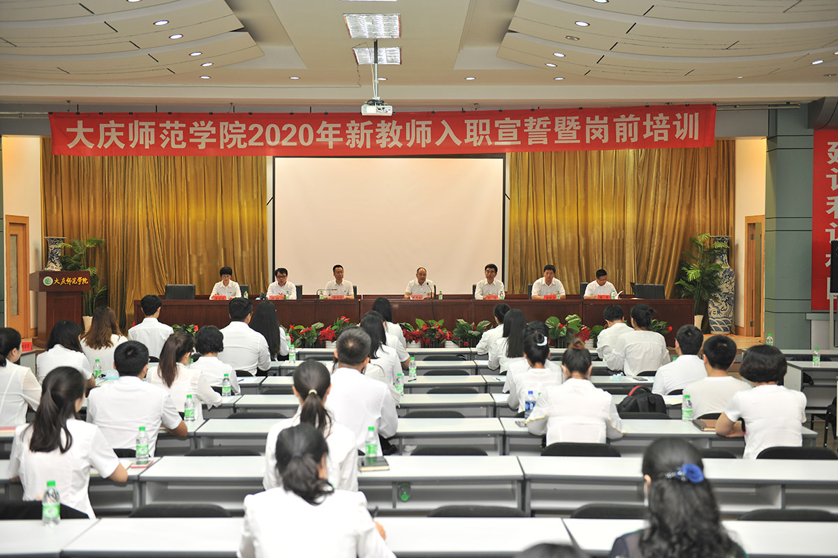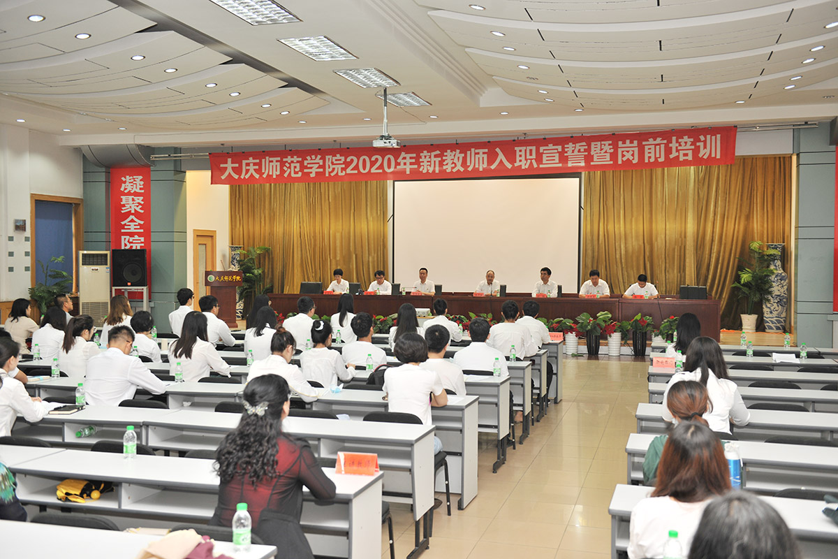 8月24日上午,我校在铁人讲堂举行2020年新教师入职宣誓仪式暨岗前培训开班仪式。