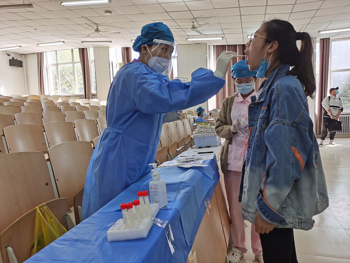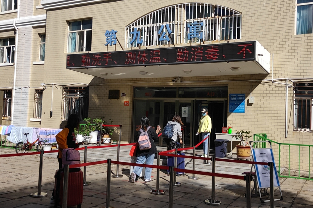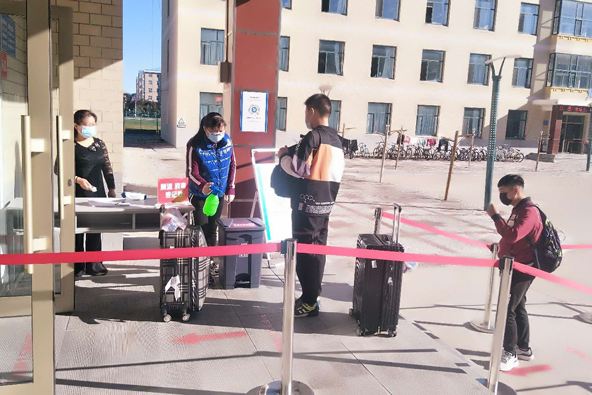 按照秋季学期学生返校工作方案,返校学生均按照要求佩戴口罩,保持1.5米间距有序报到,严格经过行李消毒、测温、查验“龙江健康码”、提供健康承诺书、核酸检测等流程后进入寝室。学生在等候核酸检测的过程中,主楼大屏幕播放校园防疫知识视频。