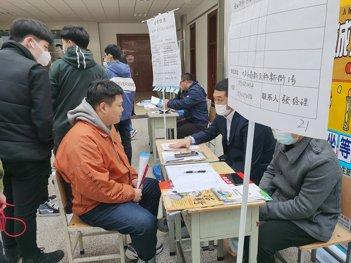 宣讲会结束后,杜尊义一行在校纪委书记滕强等学校领导陪同下来到图书馆一楼校园专场招聘会现场,详细了解前来参加招聘的重点企业的招聘岗位、薪资待遇等情况。据统计,本次专场招聘会共有大庆市内参会企业32家,提供岗位信息500余条,我校有128名学生与用人单位达成了实习就业意向。(撰稿:燕明辉 审核:张涛)