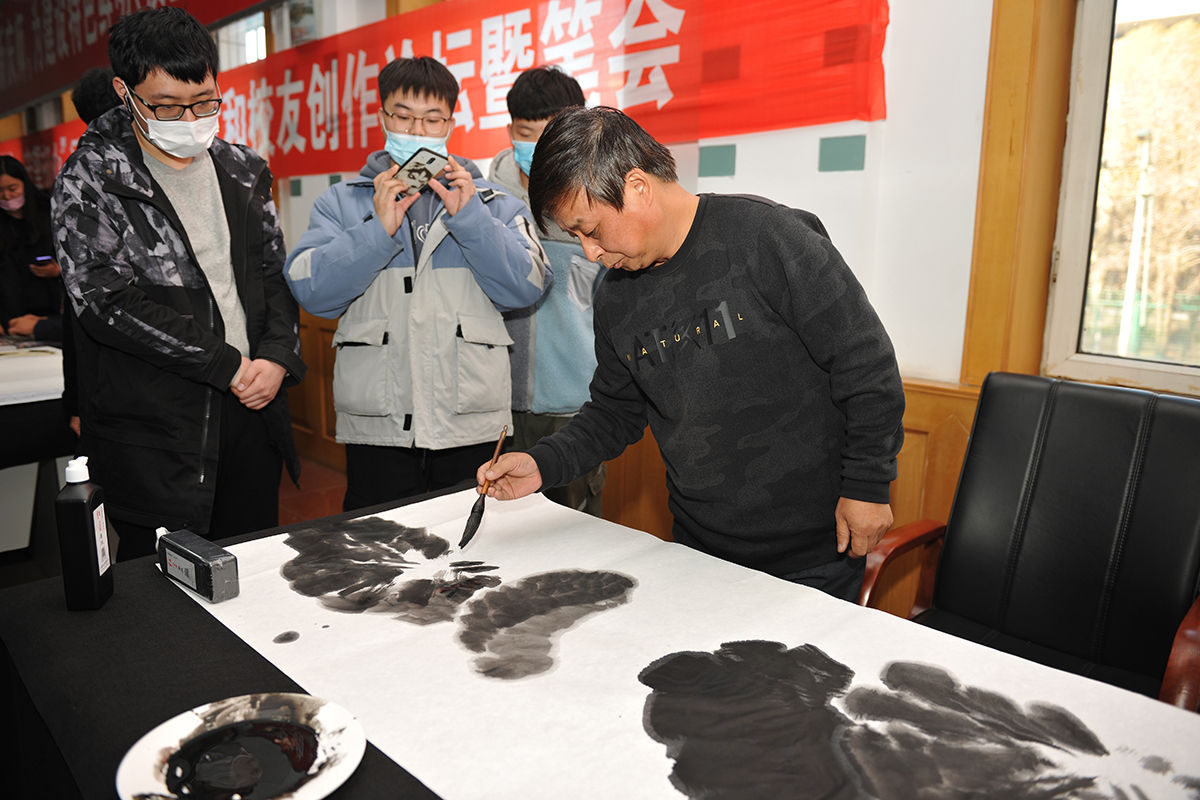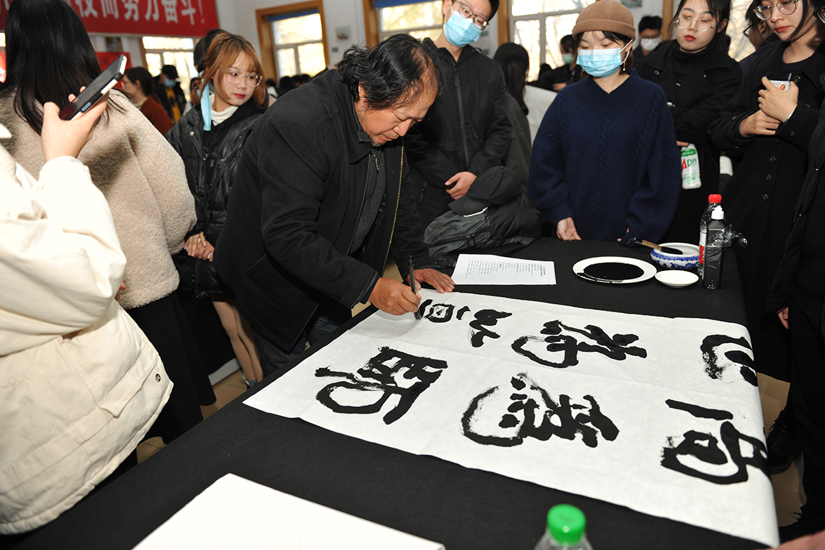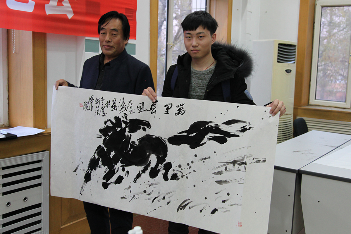 学校校友、退休教授、大庆市美术家协会、大庆油田美术家协会名誉主席、著名画家耿起峰先生,中国书法家协会会员、全国十大青年书法家提名、黑龙江省书法家协会副主席蔡兴洲先生结合自身艺术创作历程和创作经验进行了分享,让与会全体师生受益匪浅。