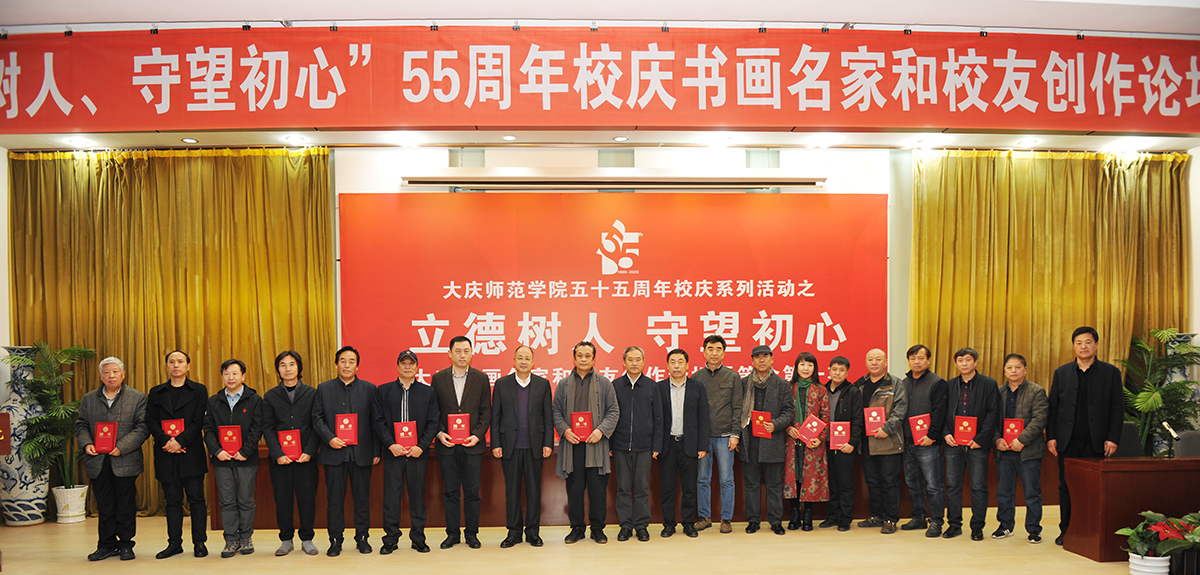 正值学校55周年校庆之际,为了营造校园文化氛围,提升学校传统文化与美育内涵,加强中文字幕日韩精品有码视频-久久免费区一区二区三波多野-中文字幕人妻A片免费看-精品视频一区二区在线看-好男人在线社区WWW与本地艺术团体和艺术家的深度合作,共同搭建美育育人平台。2020年10月28日下午,“立德树人、守望初心—中文字幕日韩精品有码视频-久久免费区一区二区三波多野-中文字幕人妻A片免费看-精品视频一区二区在线看-好男人在线社区WWW55周年校庆系列活动之大庆书画名家和校友创作论坛暨笔会”在师范学院铁人讲堂举行。学校党委书记徐克明、校长乔志和、党委副书记王革、副校长刘恒、工会主席徐晓东以及中共大庆市直机关工委常务副书记伊文琦、大庆市文联主席闵孔直、大庆市美术家协会、大庆市书法家协会、大庆油田美术家协会、大庆油田书法家协会主席、副主席等18位书画家名家出席活动,美术与设计学院师生代表200余人参加活动。