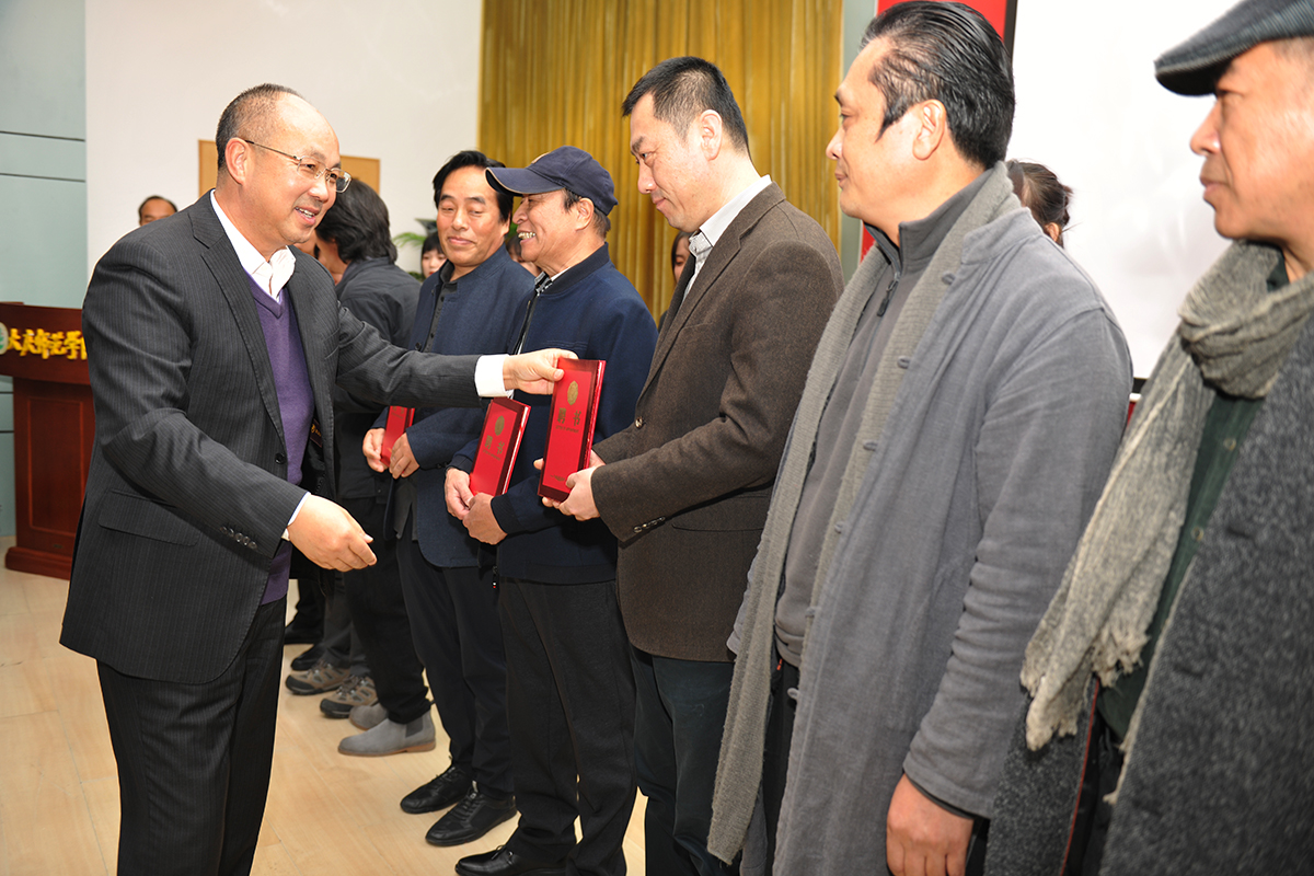校长乔志和、副校长刘恒分别为学校授聘的18位书画名家颁发了客座教授聘书。