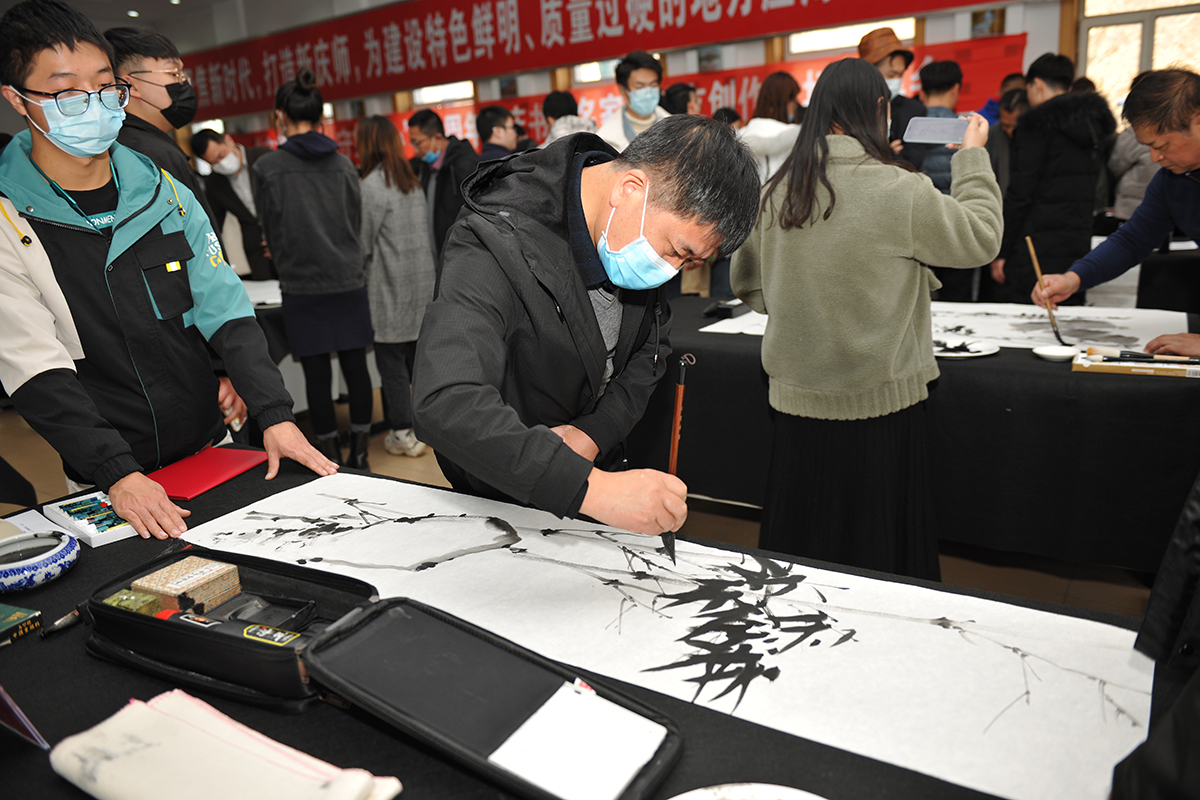 最后,与会书画名家与我校教师进行了书画笔会交流。艺术家们蘸墨挥毫,雄健的用笔书墨、绚丽的色彩,抒发着教书育人豪情,书画家完成了近60幅作品,表达了对中文字幕日韩精品有码视频-久久免费区一区二区三波多野-中文字幕人妻A片免费看-精品视频一区二区在线看-好男人在线社区WWW55年校庆的美好祝福。