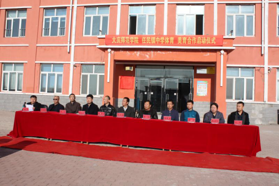启动仪式由任民镇中心学校王文宪校长主持。教务处副处长张国发、任民镇中学校长孙思忠分别代表两校签订了体育美育合作协议;郭崇林副校长、安达市教育局李权副局长共同为教育部体育美育浸润计划合作学校揭牌。