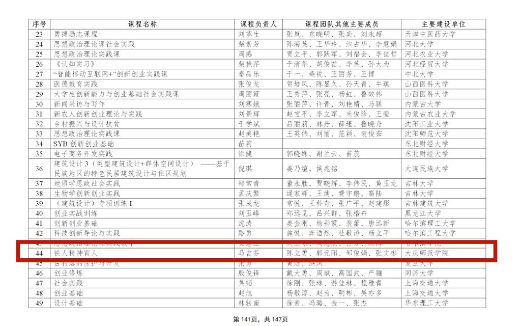 近日,教育部公示了首批国家级一流本科课程认定名单,我校马克思主义学院马吉芬副教授主讲的《铁人精神育人》被认定为首批国家级社会实践一流课程。该课程的成功获批是我校继2019年实现省级五类一流课程全覆盖后,课程建设的又一历史性突破,也是我校多年来大庆精神铁人精神办学育人的标志性成果,对我校黑龙江省特色应用型本科示范高校建设具有重要意义。