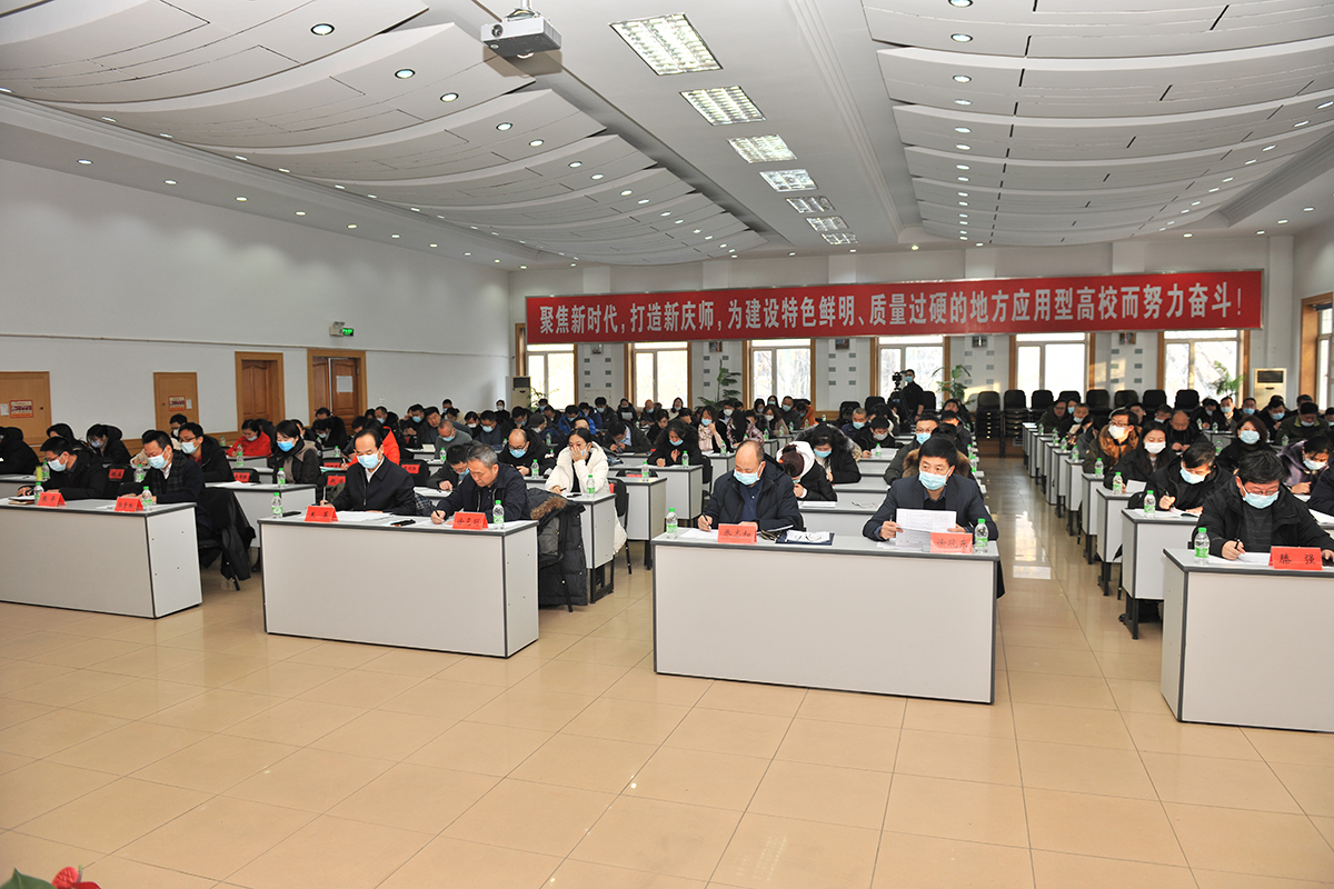 12月25日,学校在铁人讲堂召开校直机关、教辅单位2020年度业绩述评会。