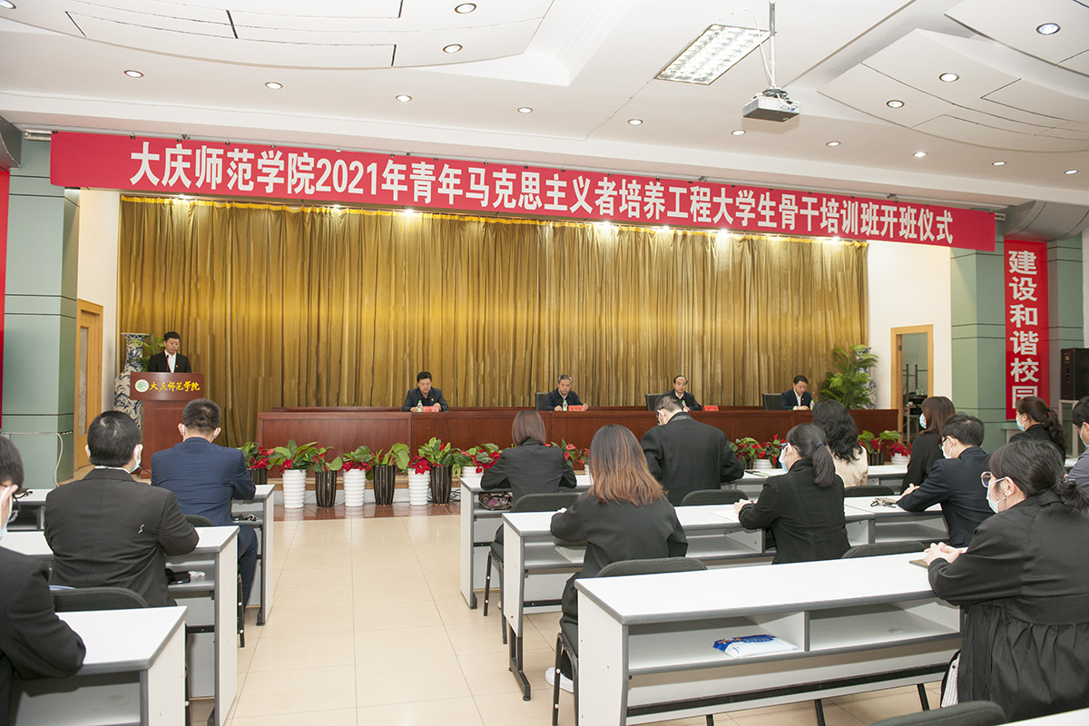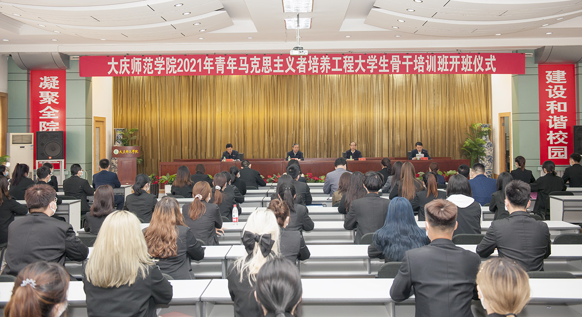 为深入贯彻落实习近平新时代中国特色社会主义思想和党的十九大精神以及《中长期青年发展规划(2016-2025)》《“青年马克思主义者培养工程”实施纲要》等文件精神,按照我校开展党史学习教育的整体要求,4月21日下午,我校2021年青年马克思主义者培养工程大学生骨干培训班开班仪式在铁人讲堂举行。