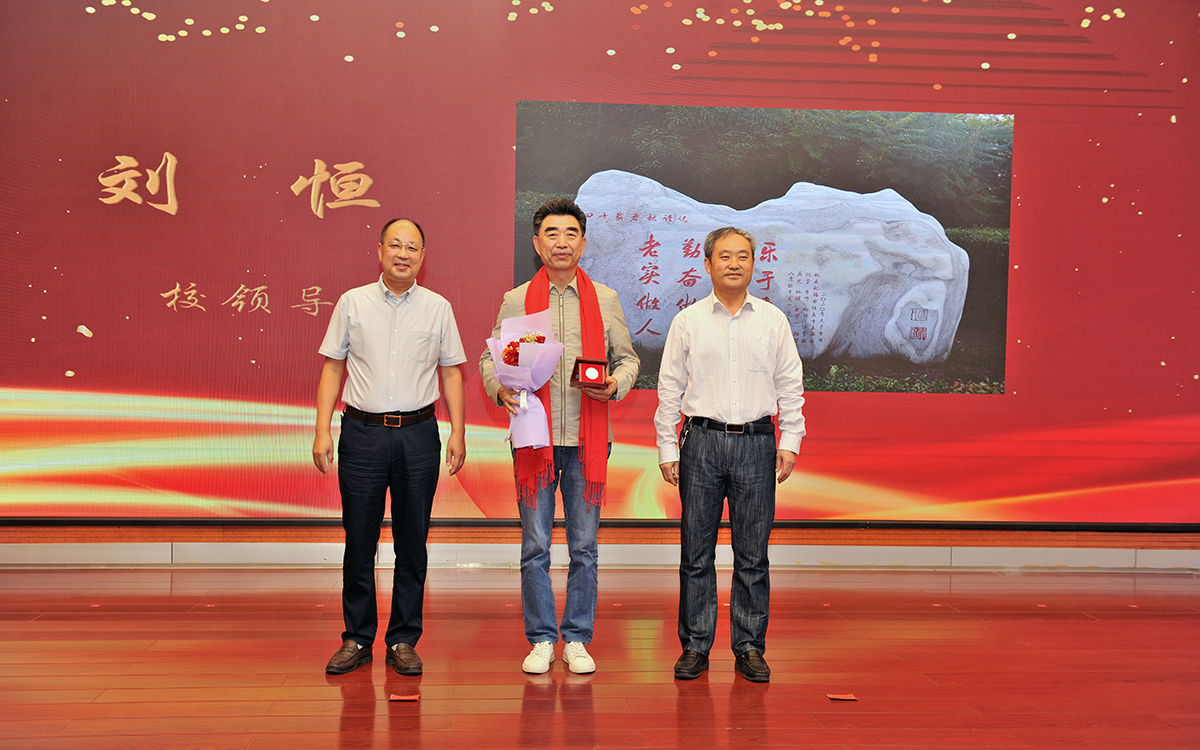 党委书记徐克明、校长乔志和为荣休教职工代表颁发荣休纪念章。