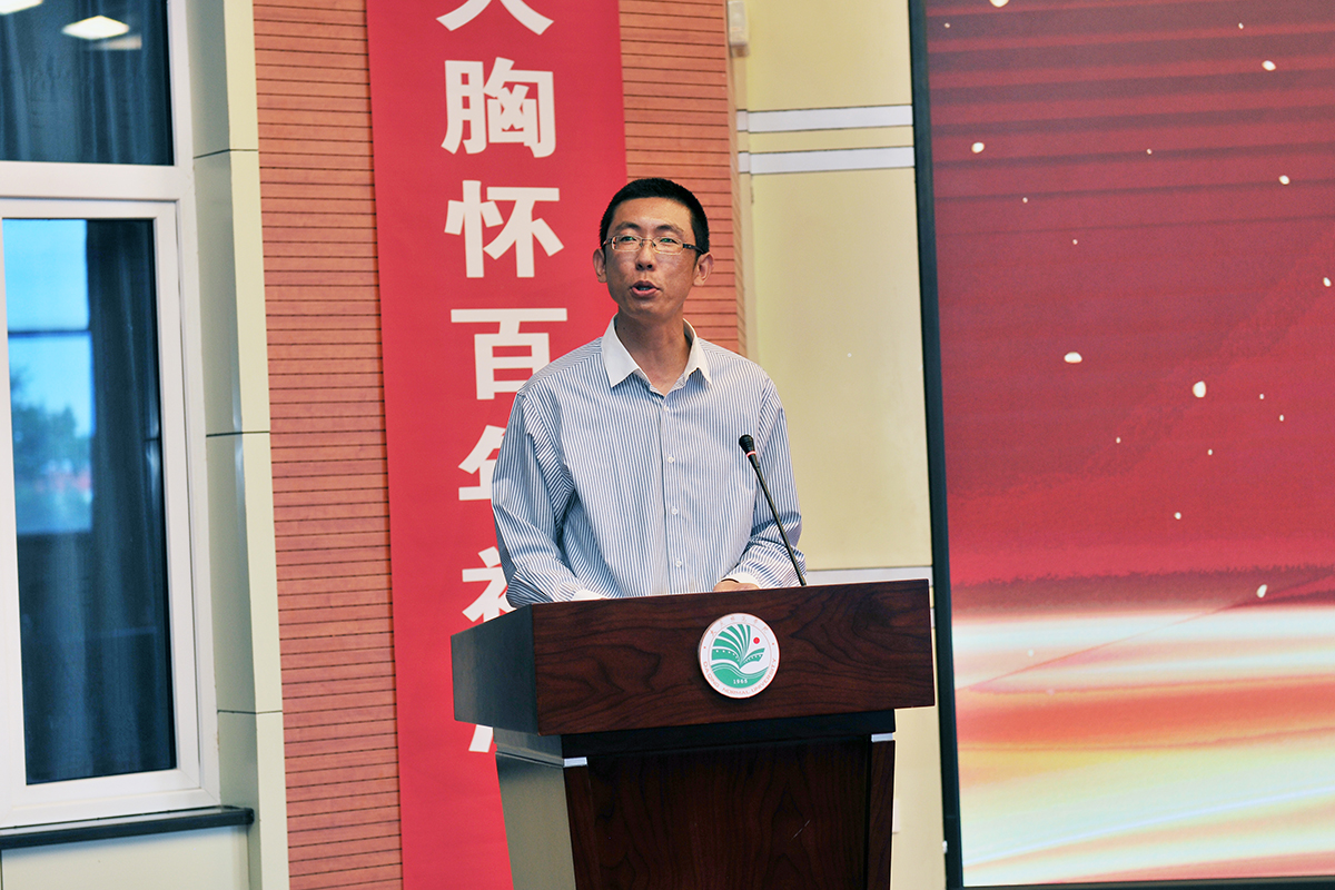 在职教师代表、文学院原昊教授以“感恩前辈传薪火 且看吾辈砥砺行”为题进行发言,表明立足本职工作、不忘优良传统、提升业务水平的决心。
