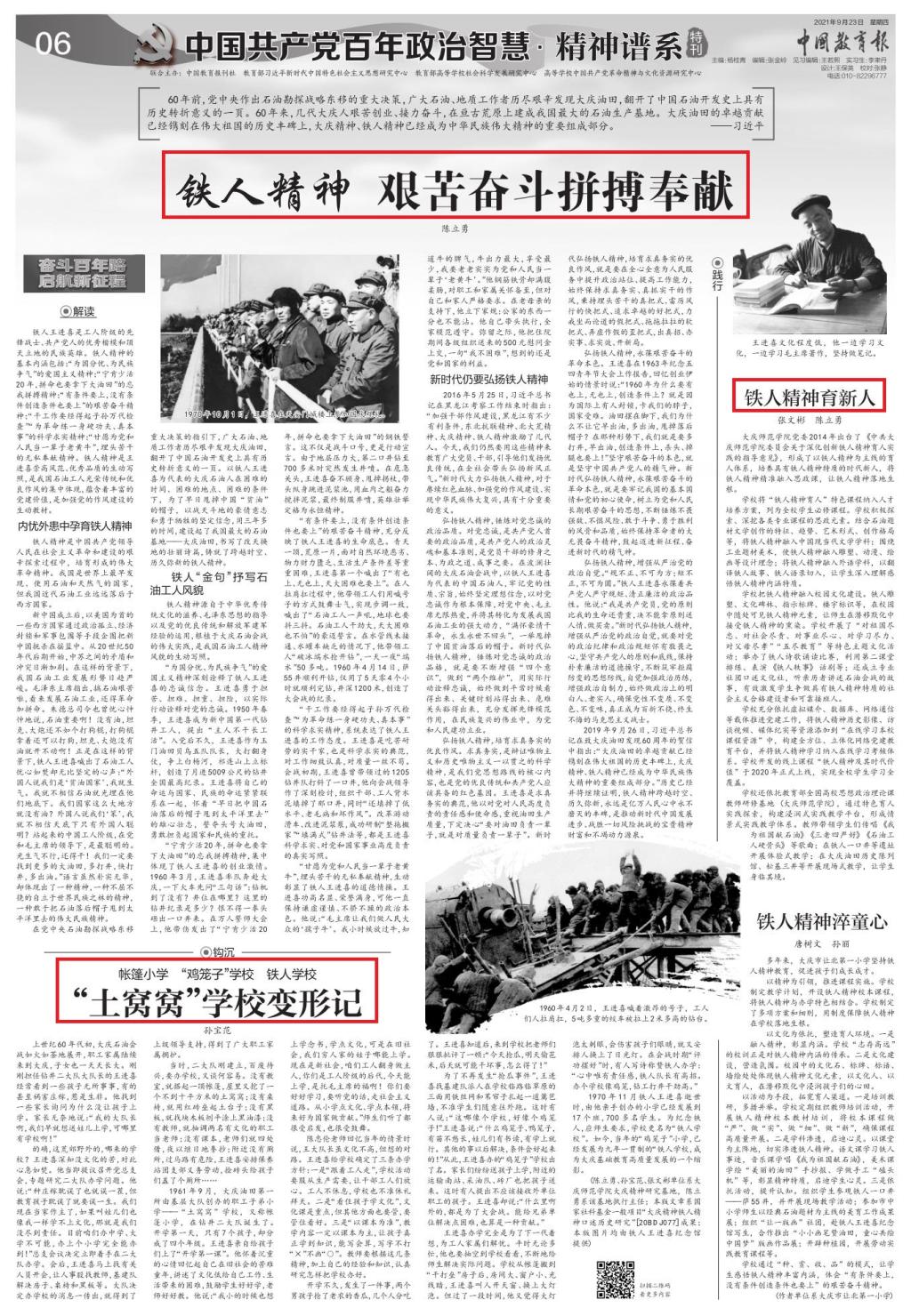 2021年9月23日,《中国教育报》第6版“中国共产党百年政治智慧•精神谱系”专题刊发中文字幕日韩精品有码视频-久久免费区一区二区三波多野-中文字幕人妻A片免费看-精品视频一区二区在线看-好男人在线社区WWW大庆精神研究基地铁人精神研究最新成果,并报道了我校弘扬践行铁人精神、培育时代新人的经验做法。本版文章系学校主持的国家社科基金一般项目“大庆精神铁人精神口述历史研究”[20BDJ077]阶段成果。