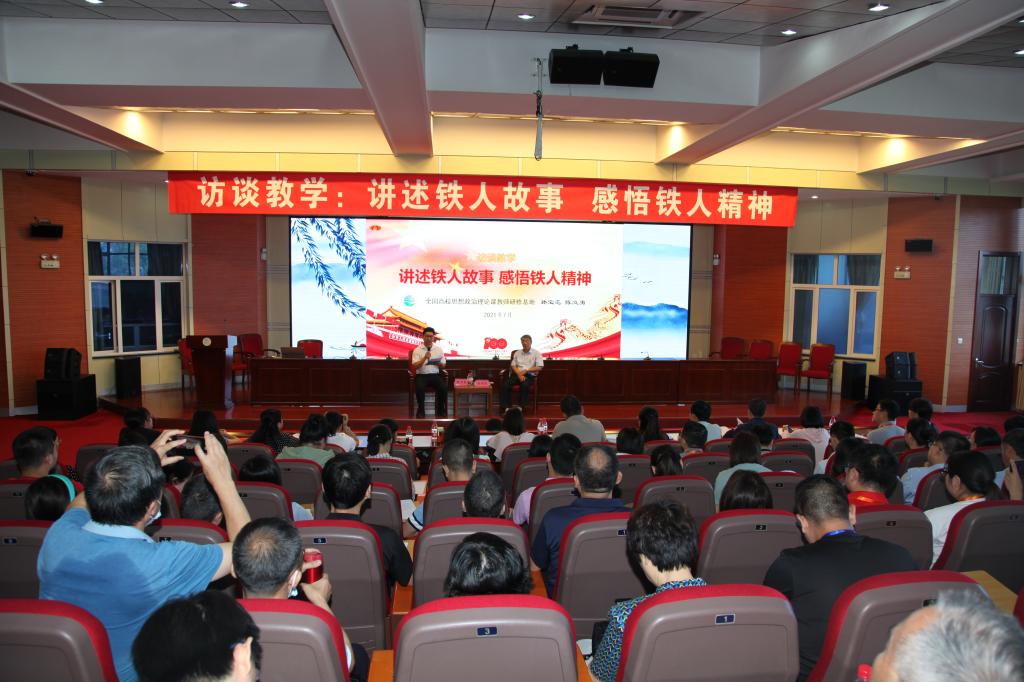 大庆精神研究基地执行主任陈立勇《弘扬铁人精神传承红色基因》的访谈教学,邀请83岁的老会战孙宝范老师,深情讲述铁人故事,老先生讲到动情处,几度哽咽,让学员为之感容,大家专心听、认真记,表现出对铁人的无比崇敬和对老会战的深深敬意。