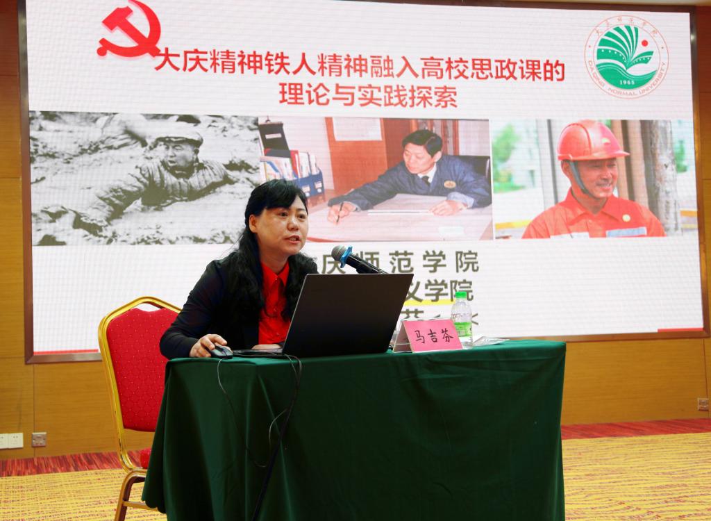 马克思主义学院院长马吉芬作了《大庆精神铁人精神融入高校思政课的理论与实践探索》的专题报告,将大庆精神、铁人精神、工匠精神、劳模文化与思政课教学贯穿起来、有机结合,展现了我校思政课教学改革的生动实践,引起全国兄弟高校同行广泛热议。