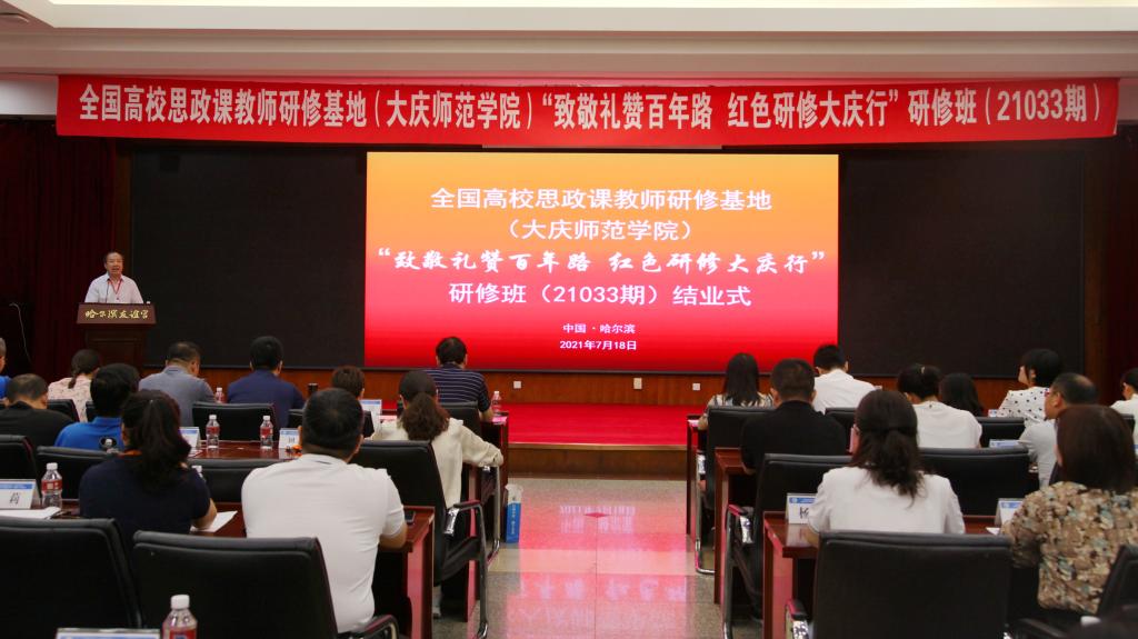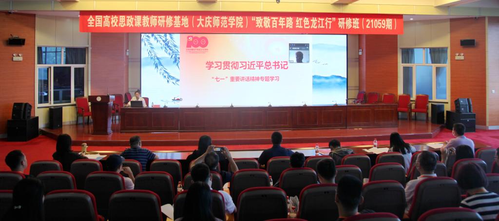 系列研修班认真学习深入领会习近平总书记“七一”重要讲话精神,深入落实党对思政课教师的要求和使命担当。研修班都以习近平总书记“七一”重要讲话为统领,按照教育部社科司当前启动的开展“七一”重要讲话联学联讲联研活动方案要求,抓好学习研修。邀请黑龙江省委党校副校长周英东教授作《学习贯彻习近平总书记“七一”重要讲话精神》专题报告,重温庆祝中国共产党成立 100 周年大会实况,牢记“一个庄严宣告”“一个伟大梦想”“四个伟大成就”“一个伟大精神”“九个必须”“一个殷切希望”“一个号召”等七项重点内容,为学员宣讲好“七一”重要讲话精神奠定了基础。